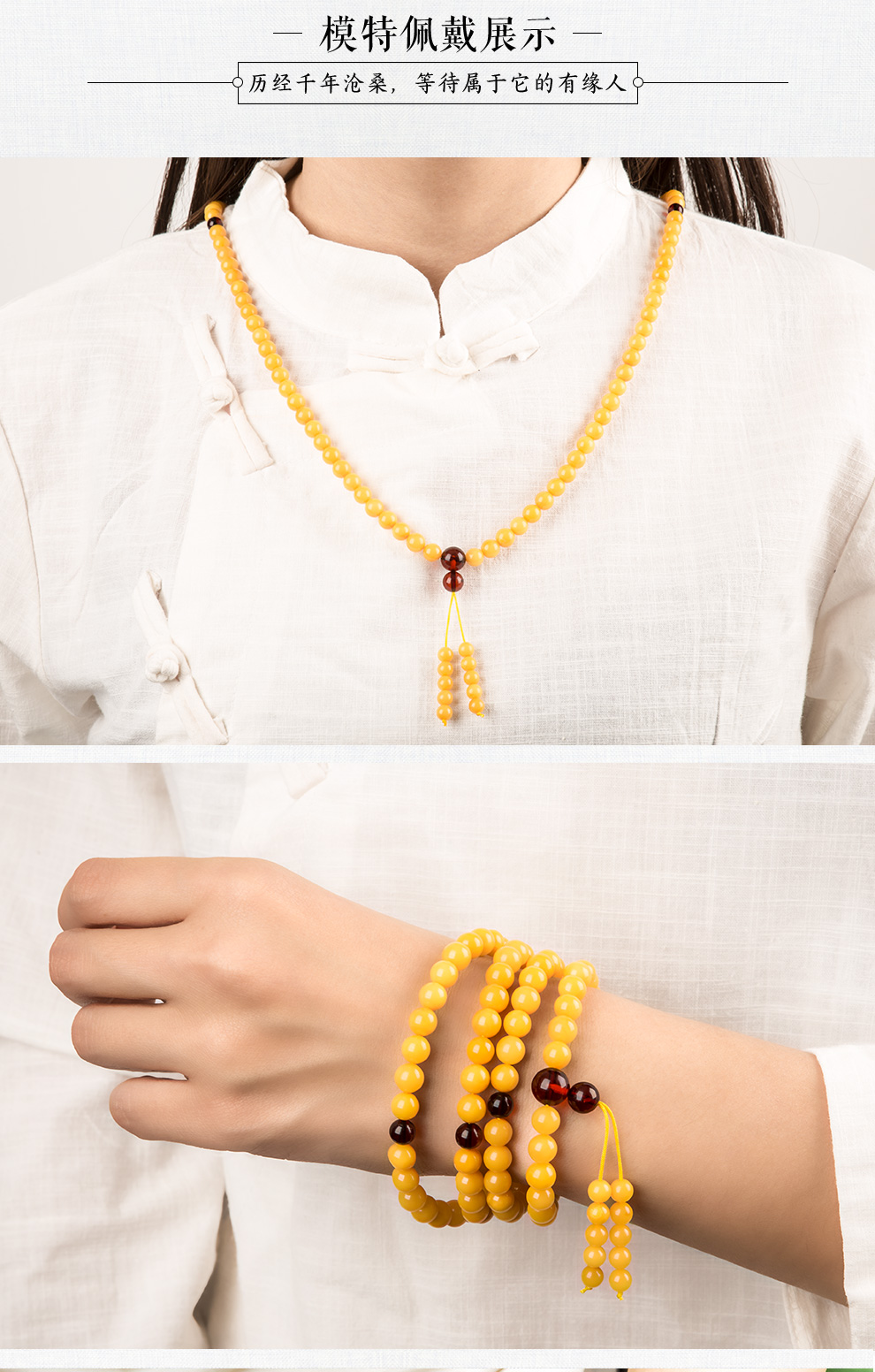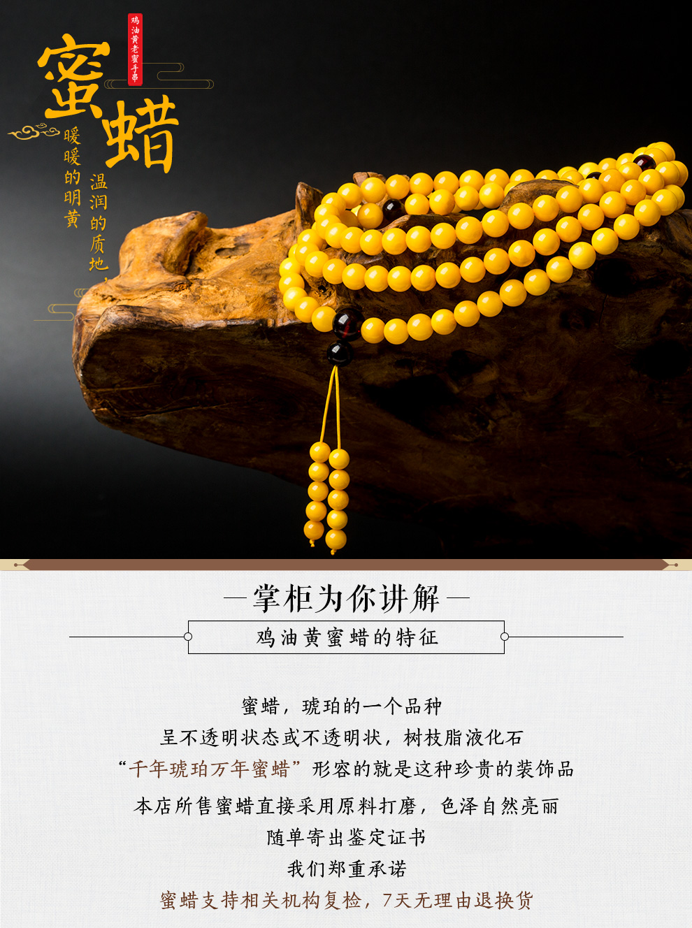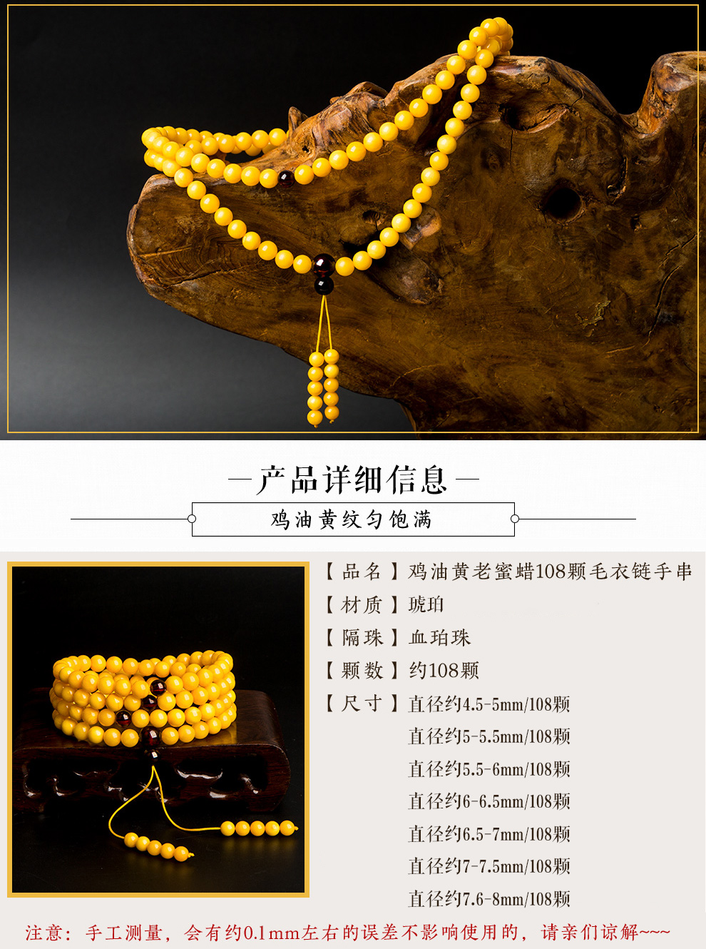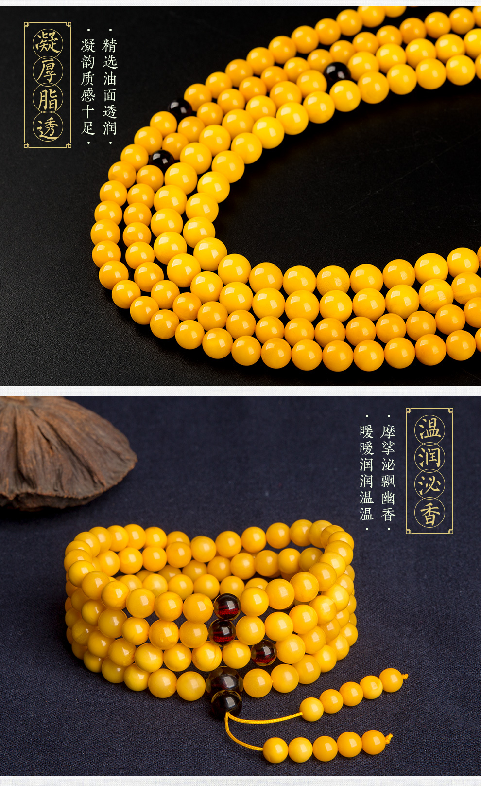 Lv Nong Jewelry Chicken Oil Yellow Old Beeswax 108 Bracelet Multi-turn Beeswax Bracelet Birthday Gift for Men and Women Bead Diameter Approximately 6-6.4mm Multi-turn Hand/Certificate + Gift Box