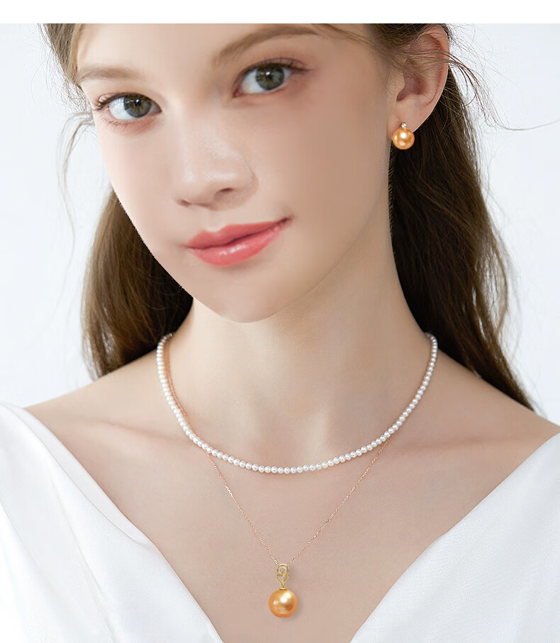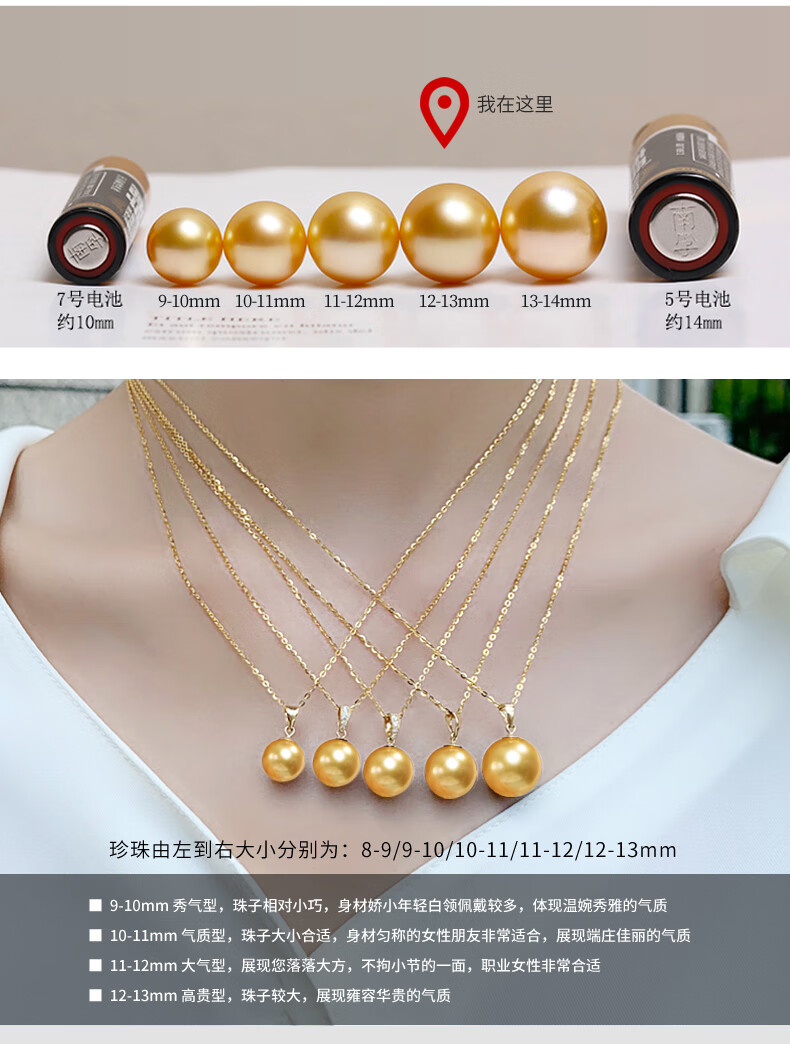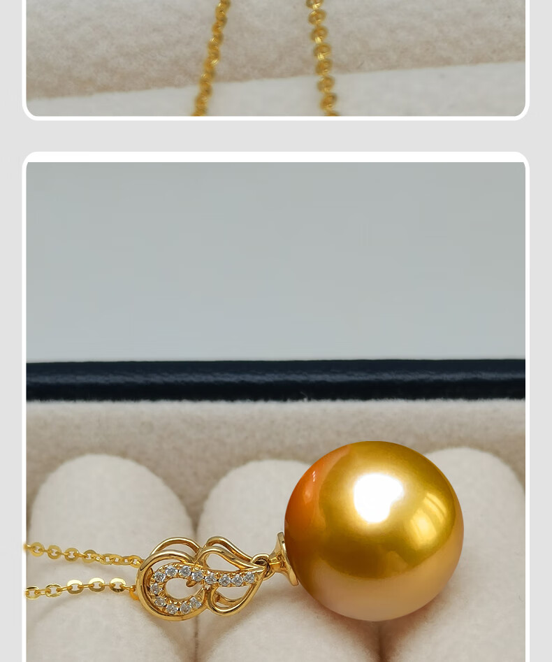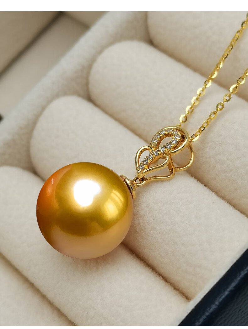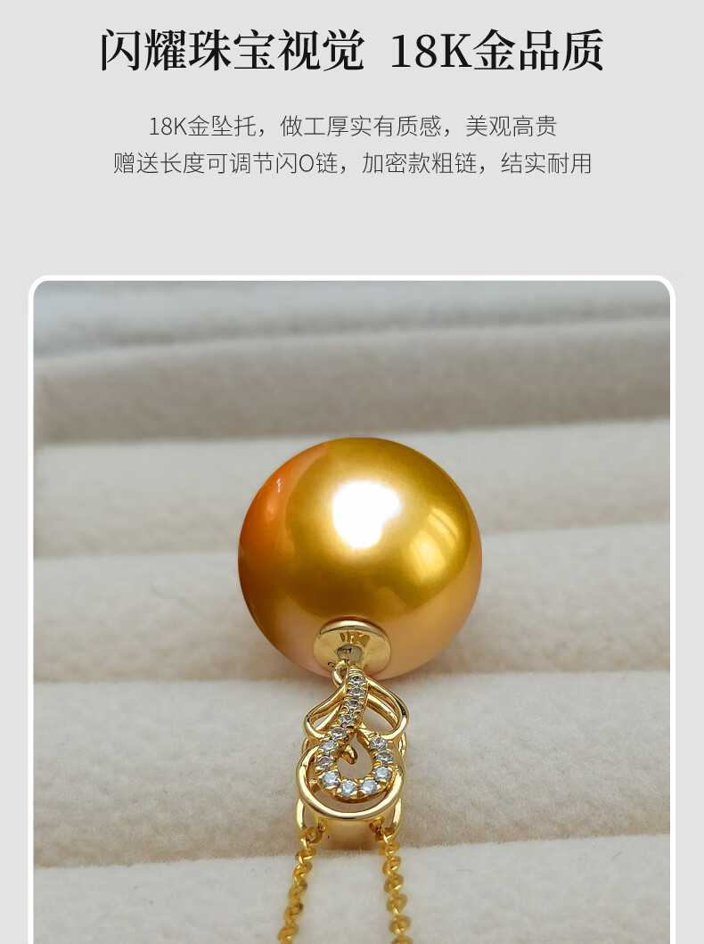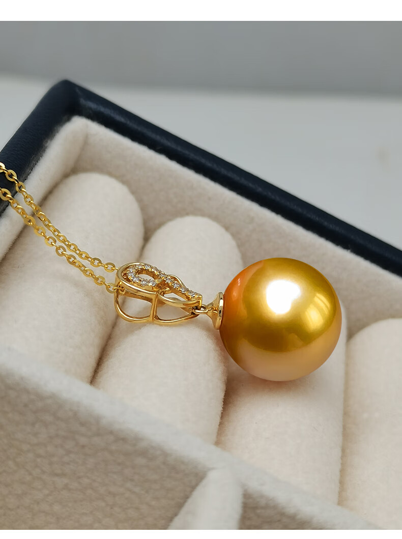 Haitong selected thick gold 18K gold South Sea gold bead pearl pendant single piece Pipa language seawater pearl necklace gold 12-13mm almost flawless