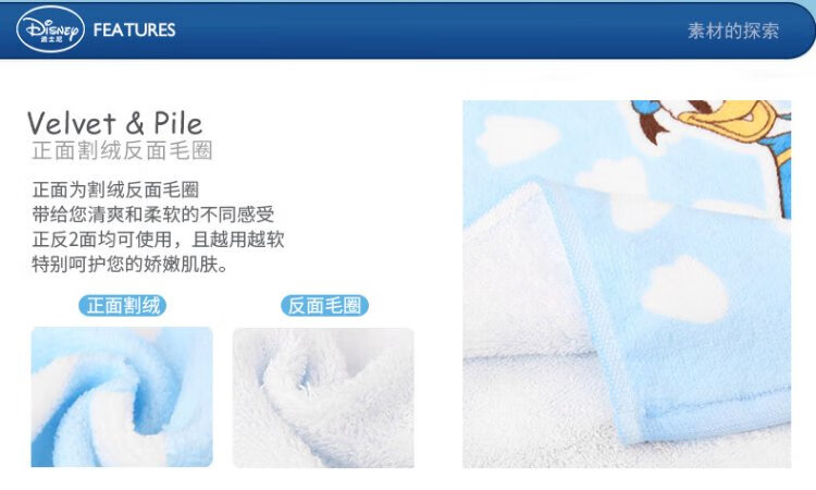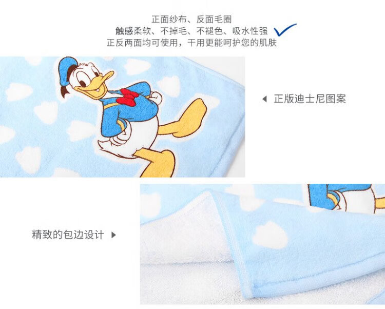 Disney (Disney) cartoon cotton cut velvet children's 3 small towels soft and strong absorbent face towel Donald Duck/Daisy/Mickey