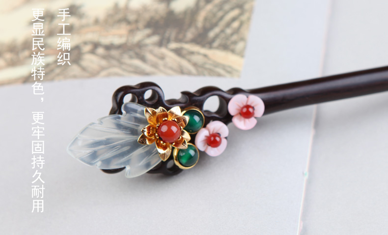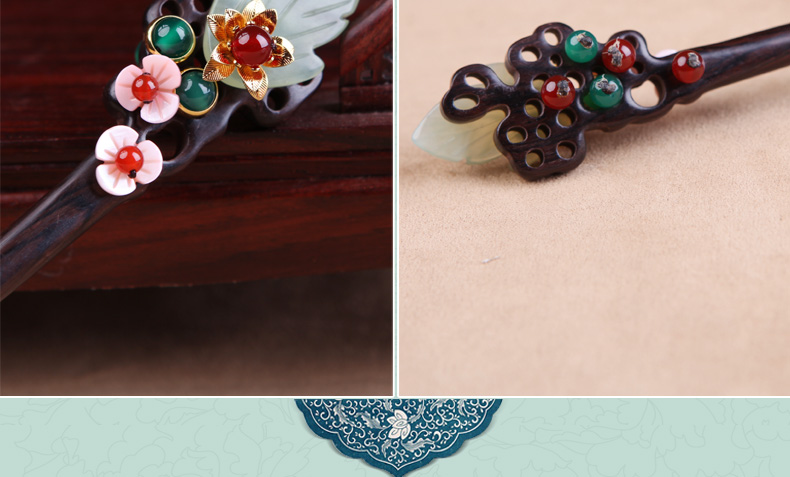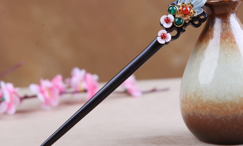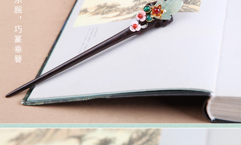 Jiangnan First Hairpin Xiu Jade Classical Palace Stepping Princess Chinese Headdress Wooden Hairpin Black Sandalwood Hair Accessories Hanfu Hairpin Accessories