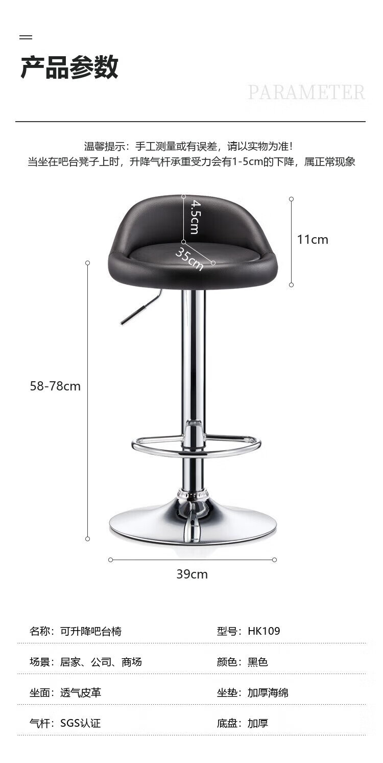 Huakai Star bar chair liftable bar high chair back chair bank corporate front desk chair home HK109 black
