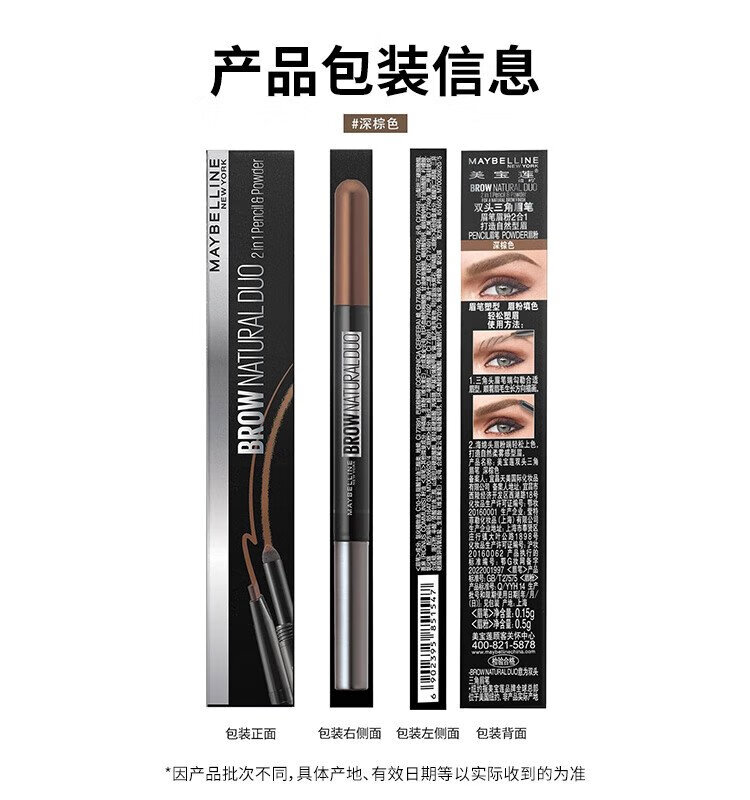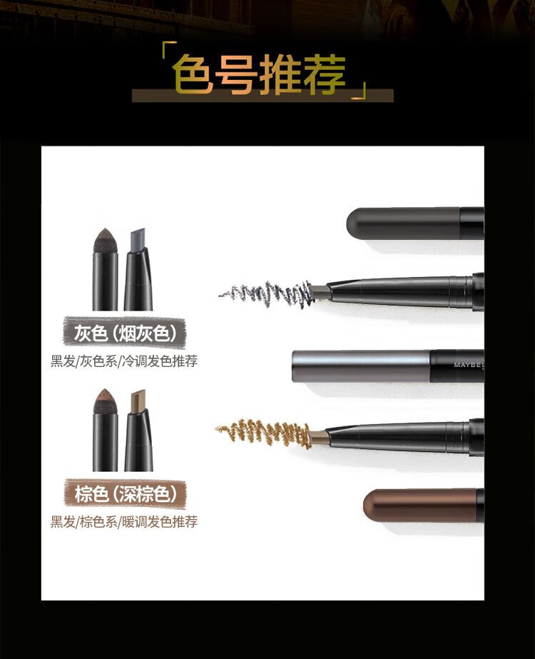 Maybelline Double-ended Triangular Eyebrow Pencil, Waterproof, Sweatproof and Smudge-proof, Eyebrow Pencil + Eyebrow Powder, Brown, Birthday Gift for Women