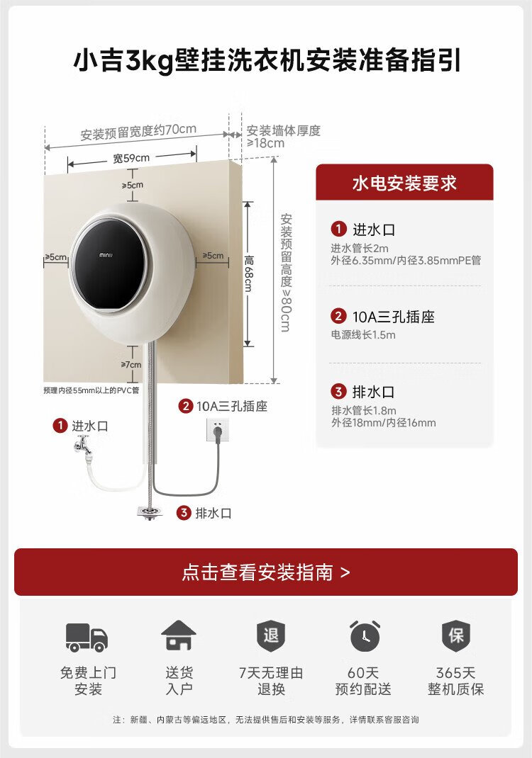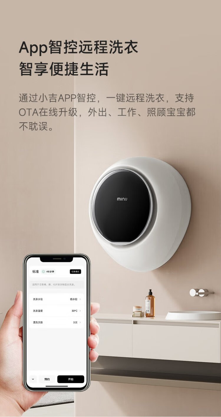 Xiaoji wall-mounted drum washing machine small 3kg anti-fall baby underwear mini fully automatic washing machine national subsidy industry best-selling G1-ZB white