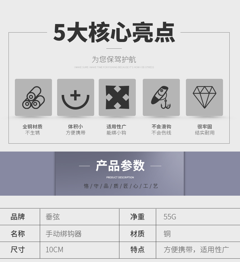 ChuiXian copper hook tying device manual fishhook tying device sub-line knotting device line tying device hook tying device fishing accessories fishing gear
