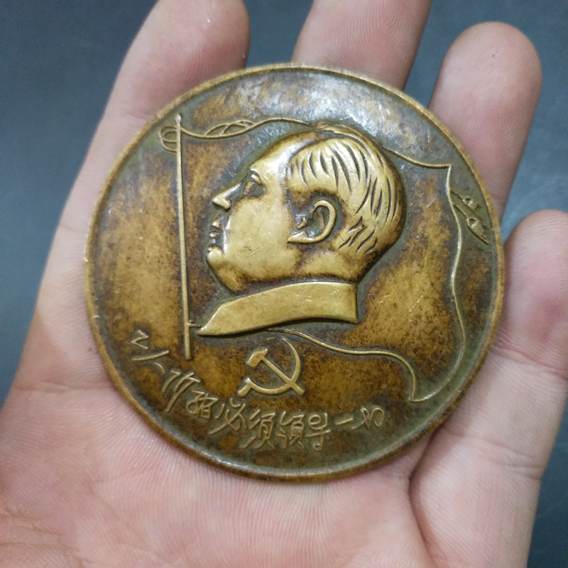 Miande Chairman Mao badge, Xi commemorative badge, 6cm diameter copper red classic great man badge