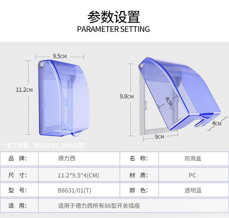DELIXI switch socket splash-proof box 86 type blue transparent splash-proof box plastic cover