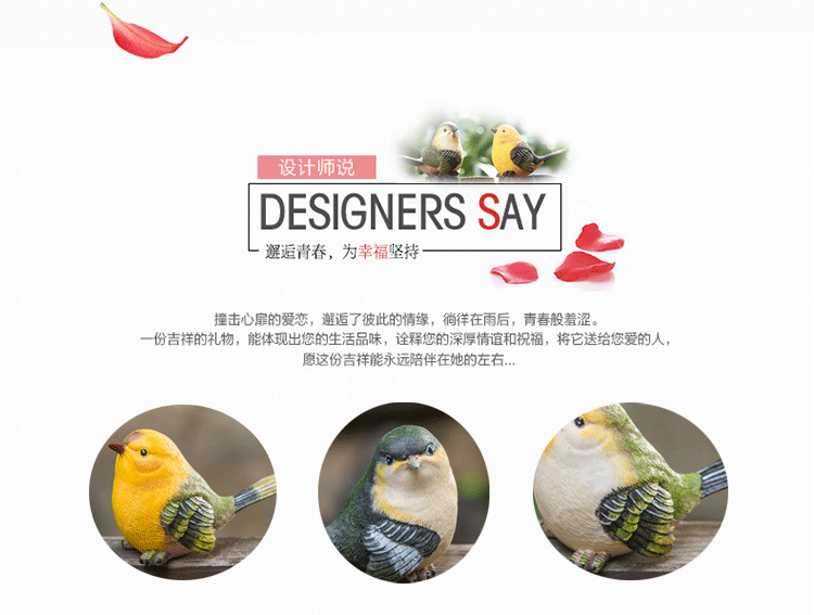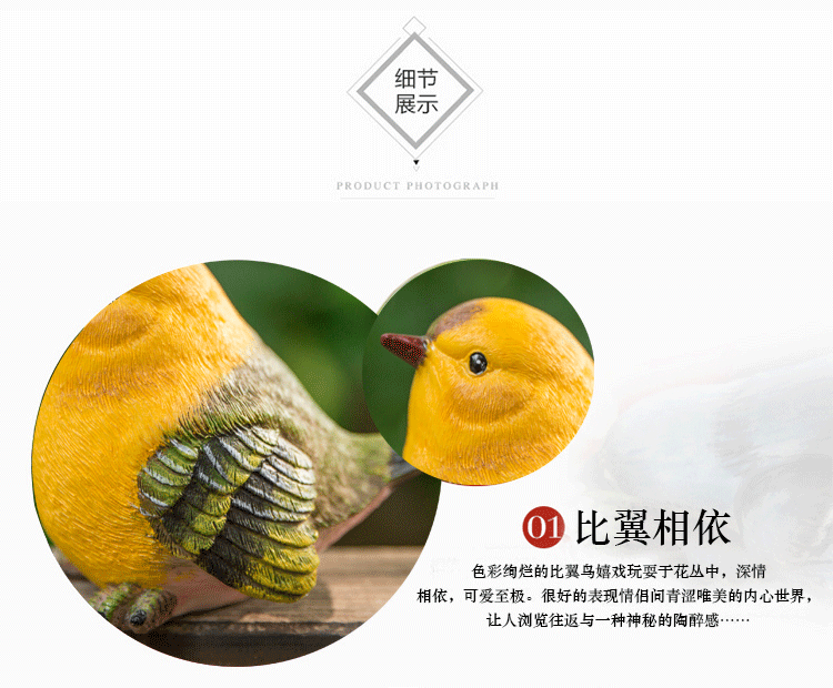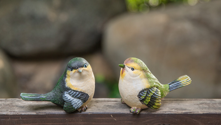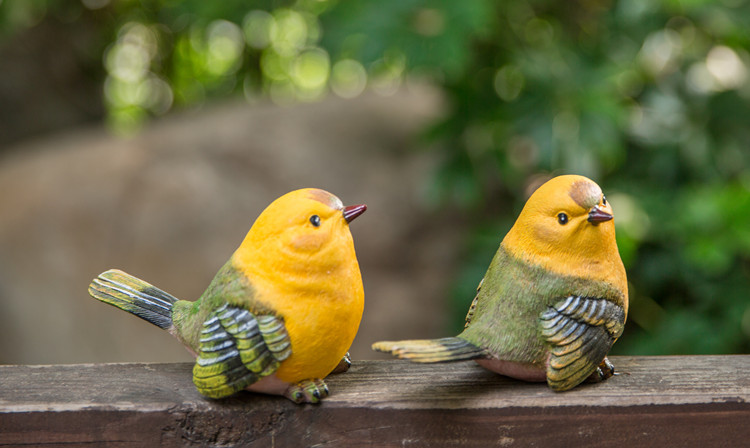 Huixiang creative gift courtyard home simulation animal sculpture resin craft bird decorative ornaments home accessories one yellow and one green (2 pieces)