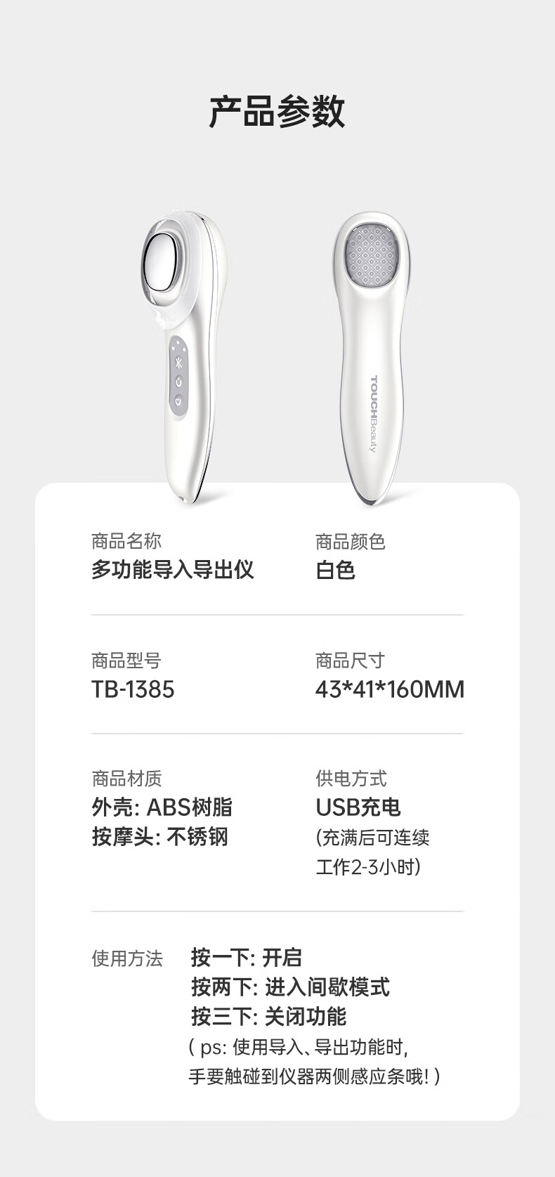 TOUCHBeauty Beauty Instrument Introduction Instrument Sound Wave Export Cleansing Household Facial Massage Instrument Facial Deep Cleansing Photon Rejuvenation Instrument Beauty Instrument TB-1385