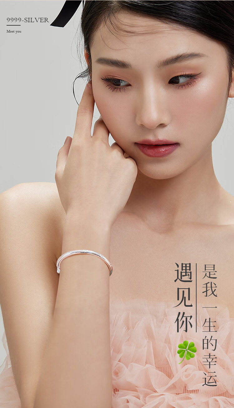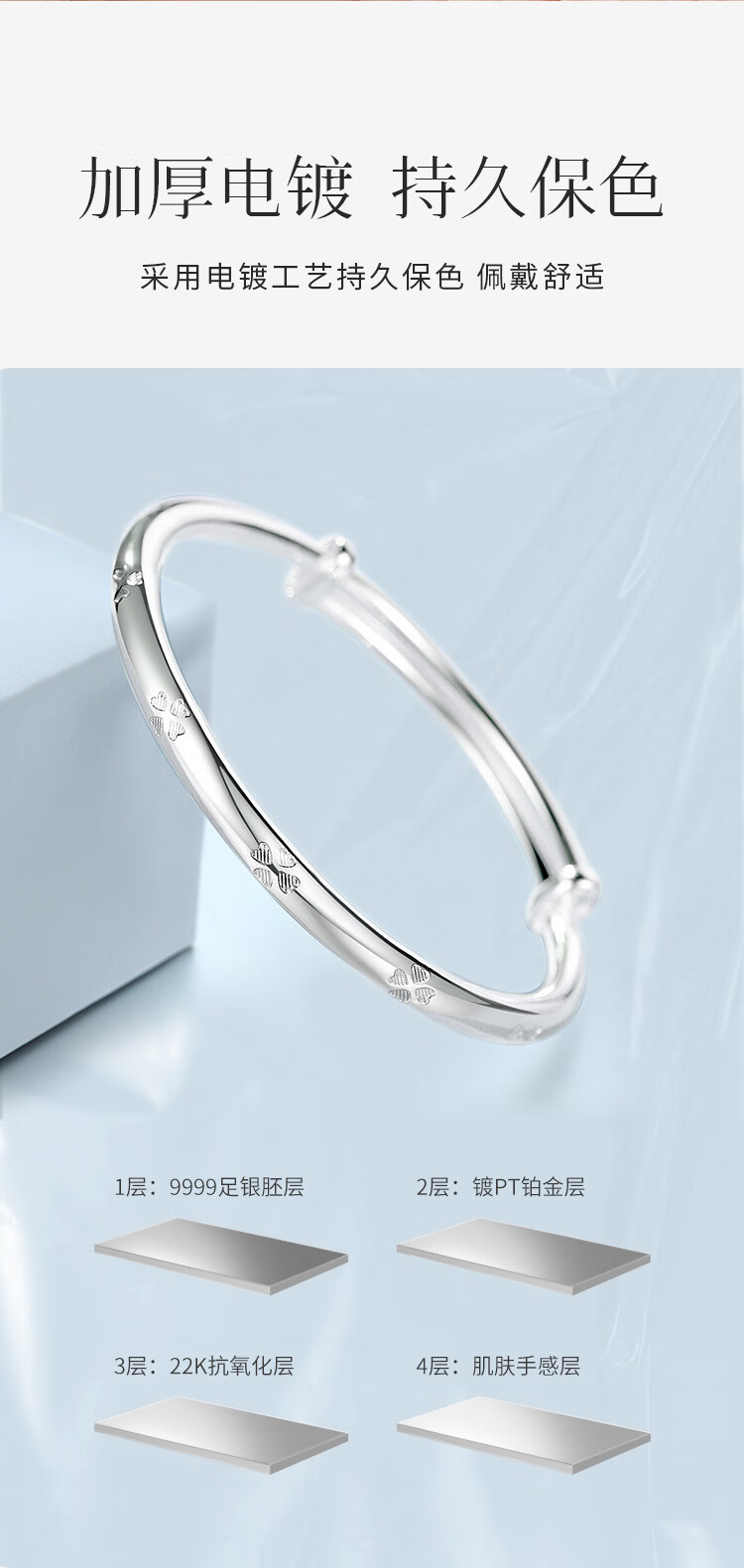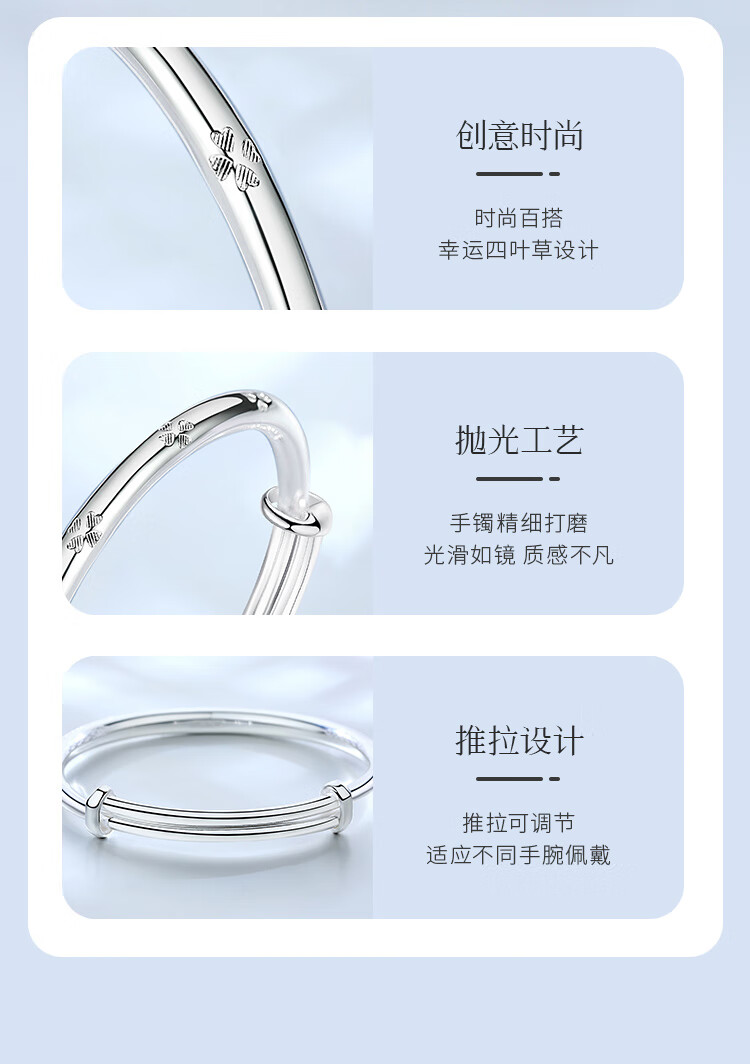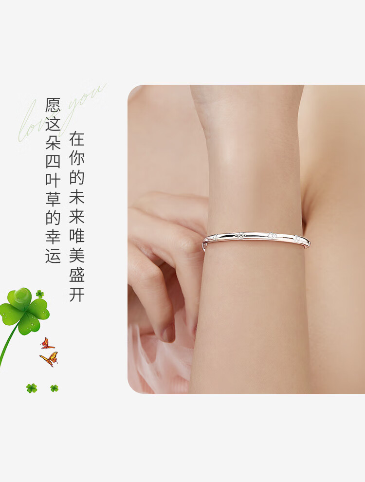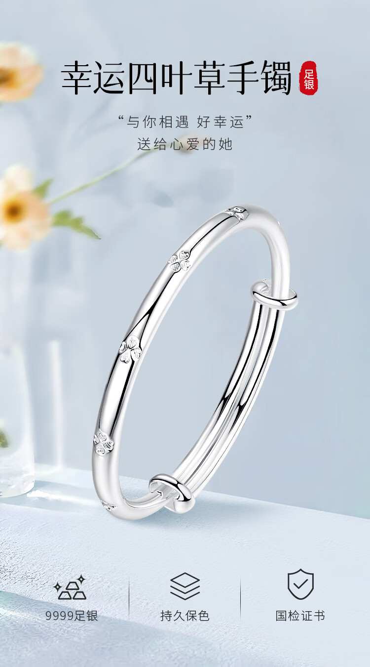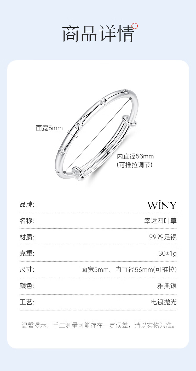The only (Winy) four-leaf clover bracelet pure silver 9999 girl birthday anniversary gift for girlfriend and wife fashion jewelry solid lucky four-leaf clover + gift for girlfriend 31 1g