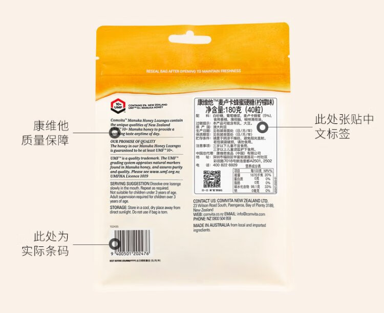 Comvita Manuka Honey Candy 180g Throat Clearing Lozenges New Zealand Imported Gifts Office Snacks
