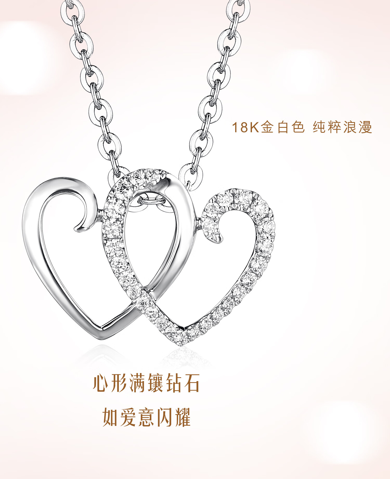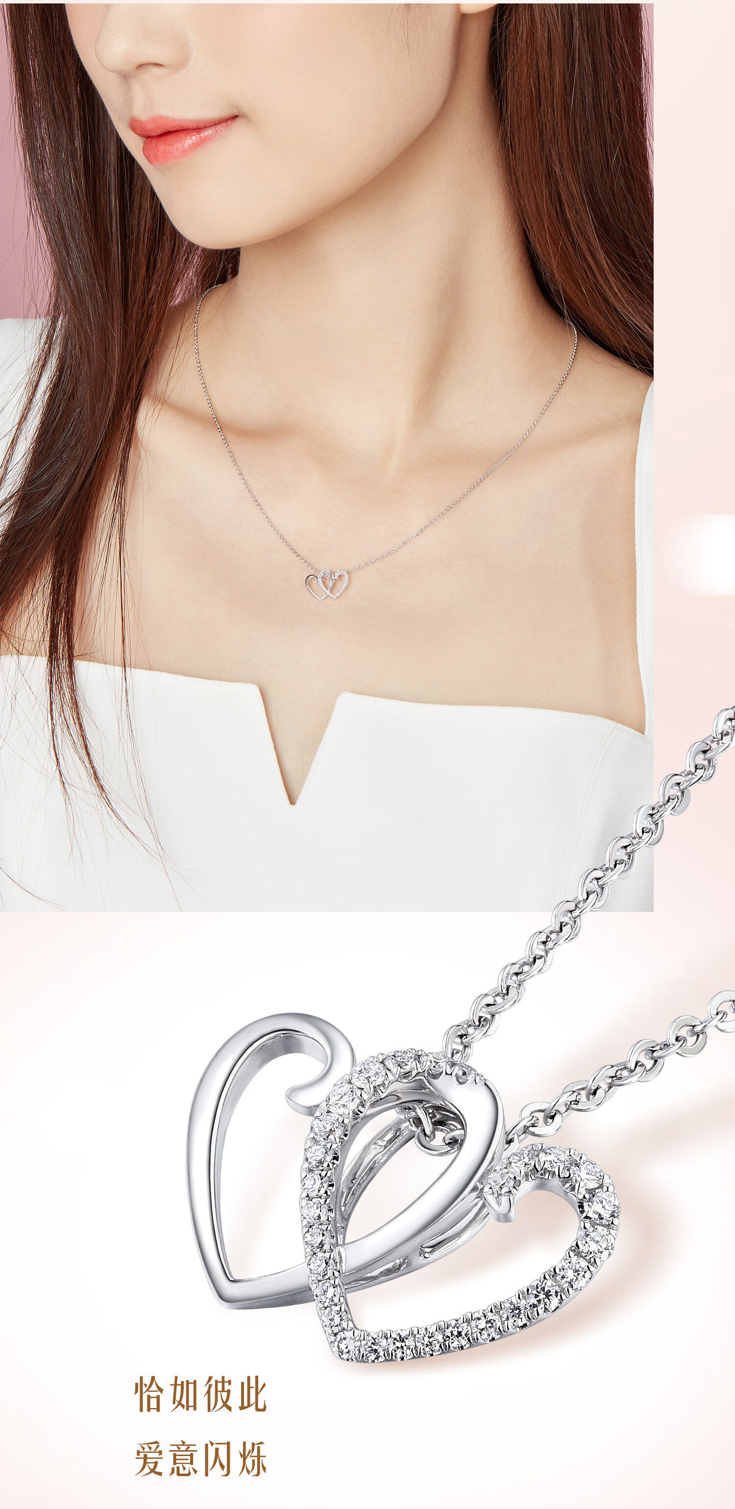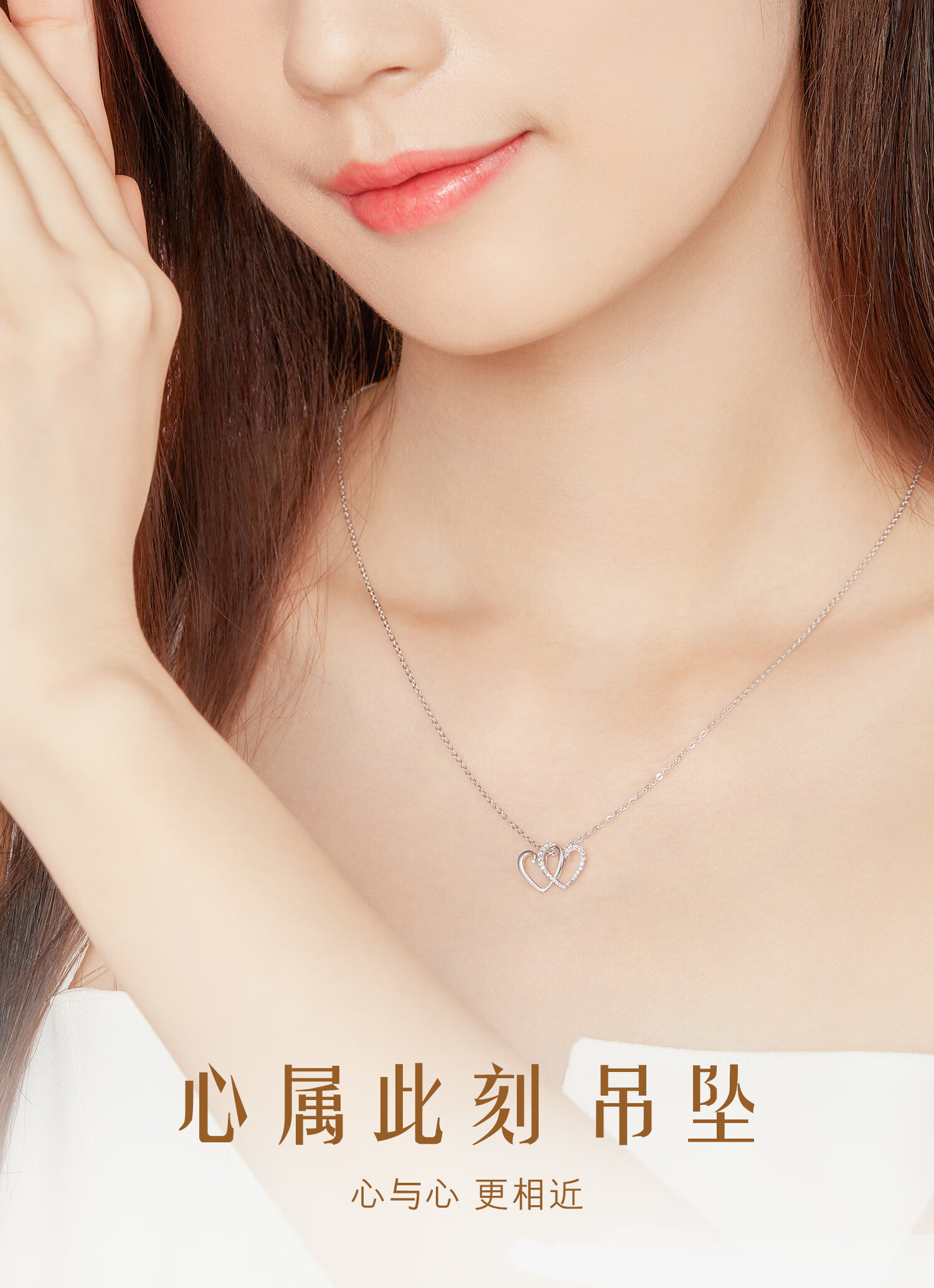 Lukfook Jewelry 18K gold heart-shaped diamond pendant for women, necklace not included, gift for girlfriend N126, total weight 0.85 grams