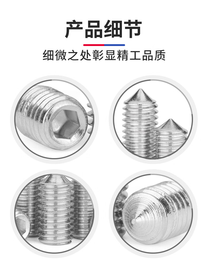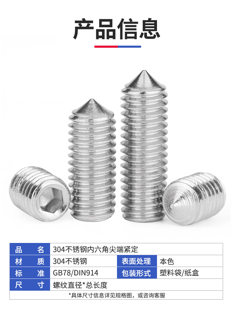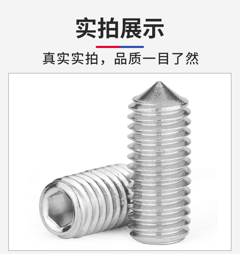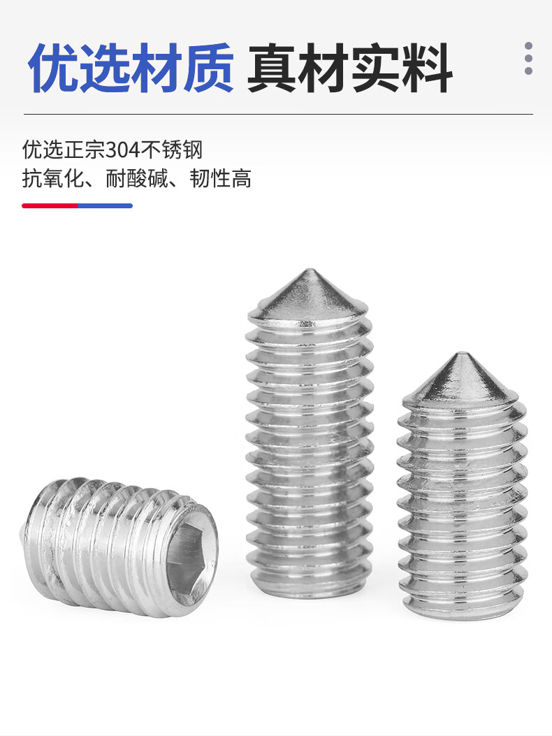 Jinggong 304 stainless steel hexagonal tip set screw machine meter screw headless screw top screw door handle screw tip M6x8 100 pieces