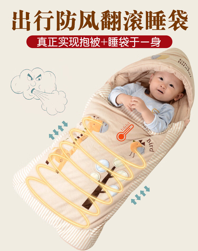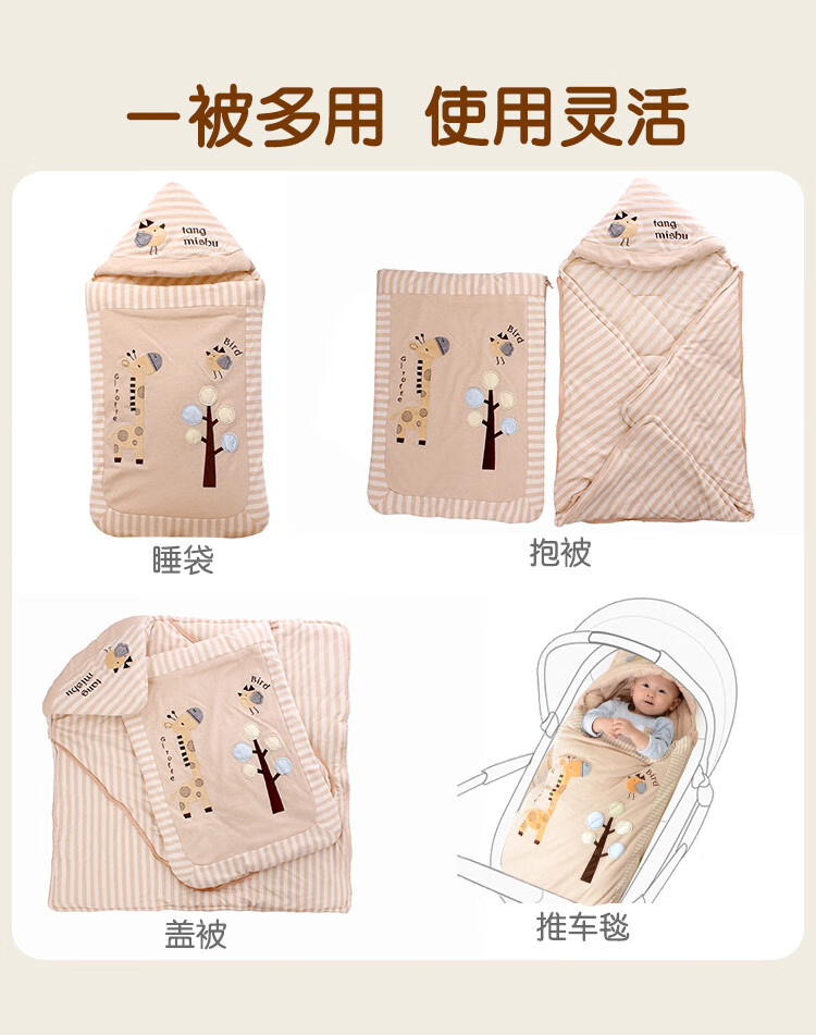 Tommy Rat Newborn Baby Sleeping Bag Autumn and Winter Thick Windproof and Warm Multifunctional Children's Baby Blanket Brown Colored Cotton Giraffe Dual-Purpose Sleeping Bag Blanket