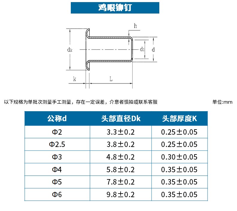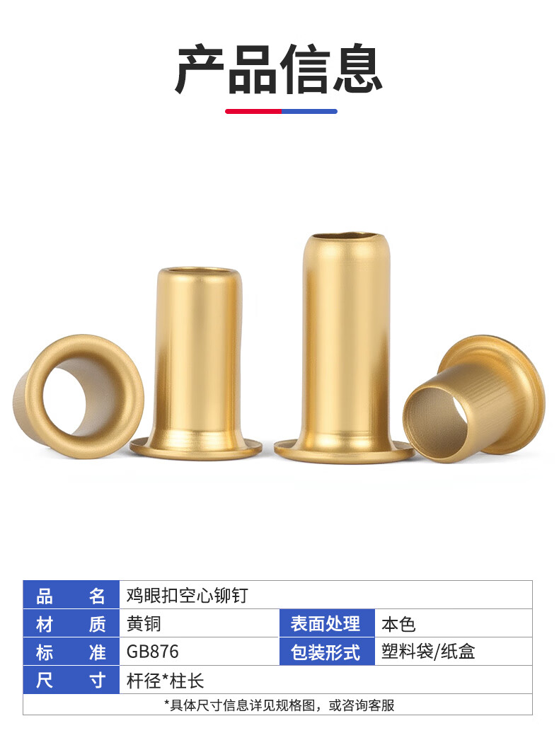 Jinggong copper eyelet button eyelet rivet hollow copper rivet through hole rivet air eye button rivet button hollow rivet 234 2*2 500 pcs