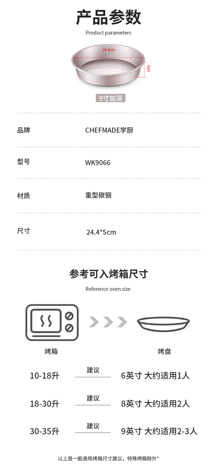 Xuechu 9-inch deep pizza pan, baking pan mold, golden round household pizza pan, diameter 24.4cm*height 5cm, non-stick coating, oven baking mold WK9066