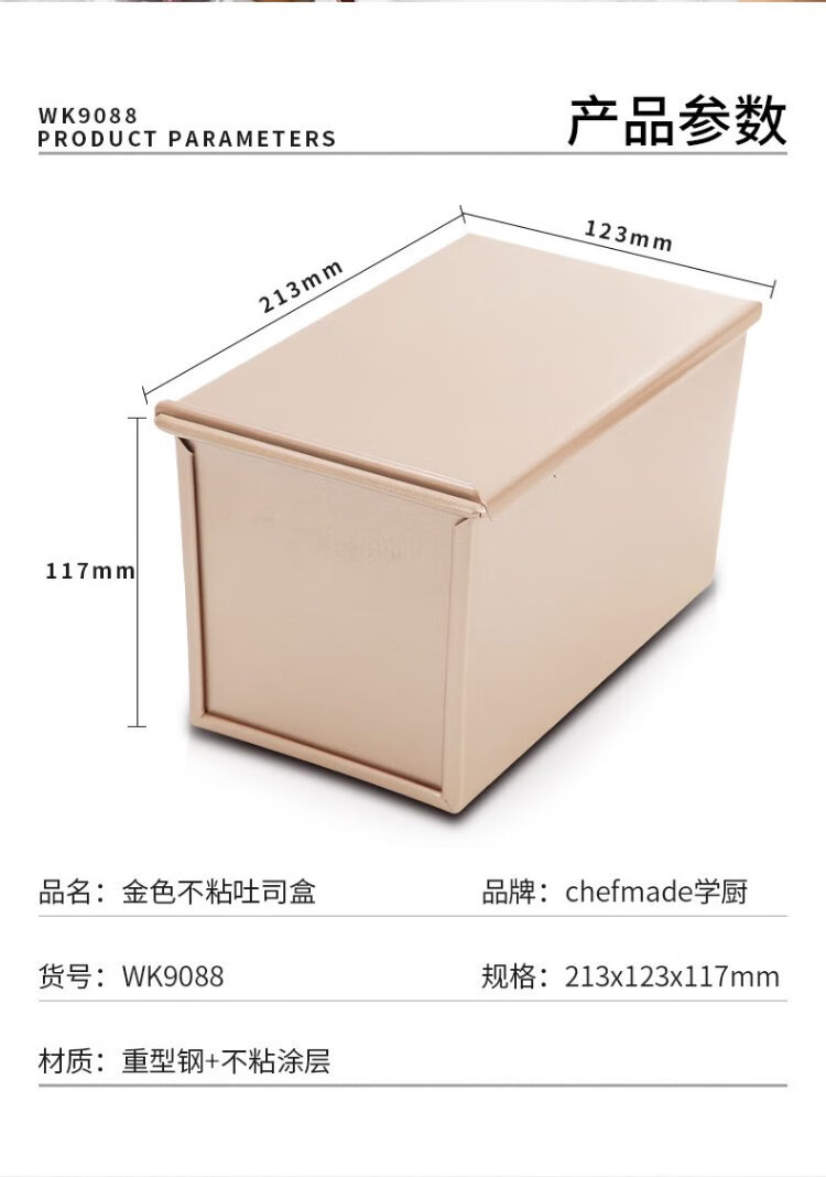 Xuechu toast mold non-stick low sugar energy-saving plain sliding lid toast box bread mold WK9088