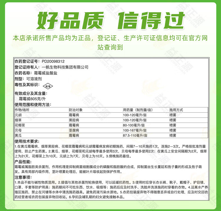 Yifan Biotech 72.2% propamocarb hydrochloride Yuanhu cucumber broccoli downy mildew black shank stem rot pesticide fungicide 20g