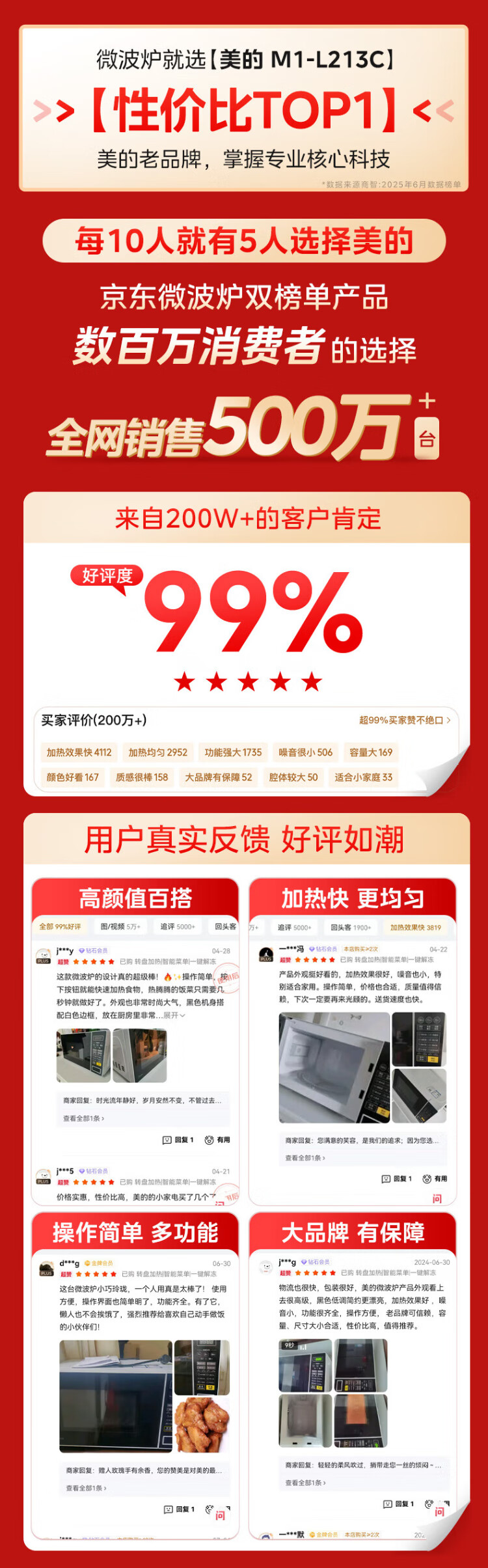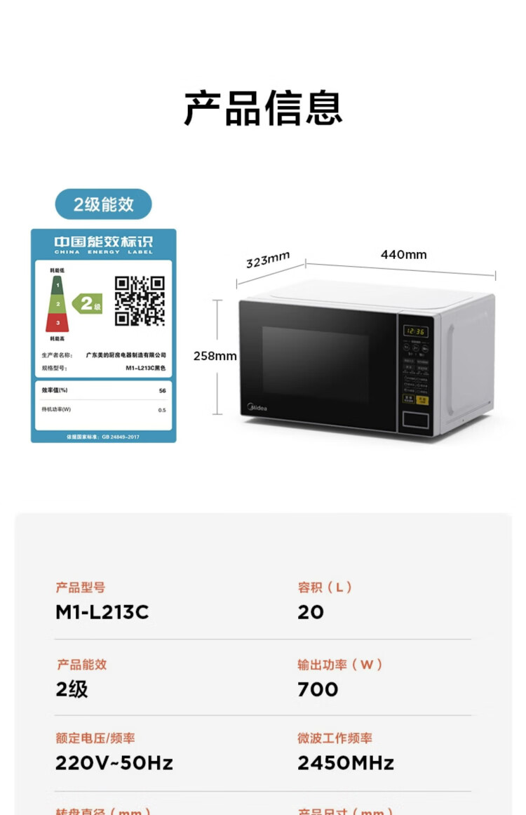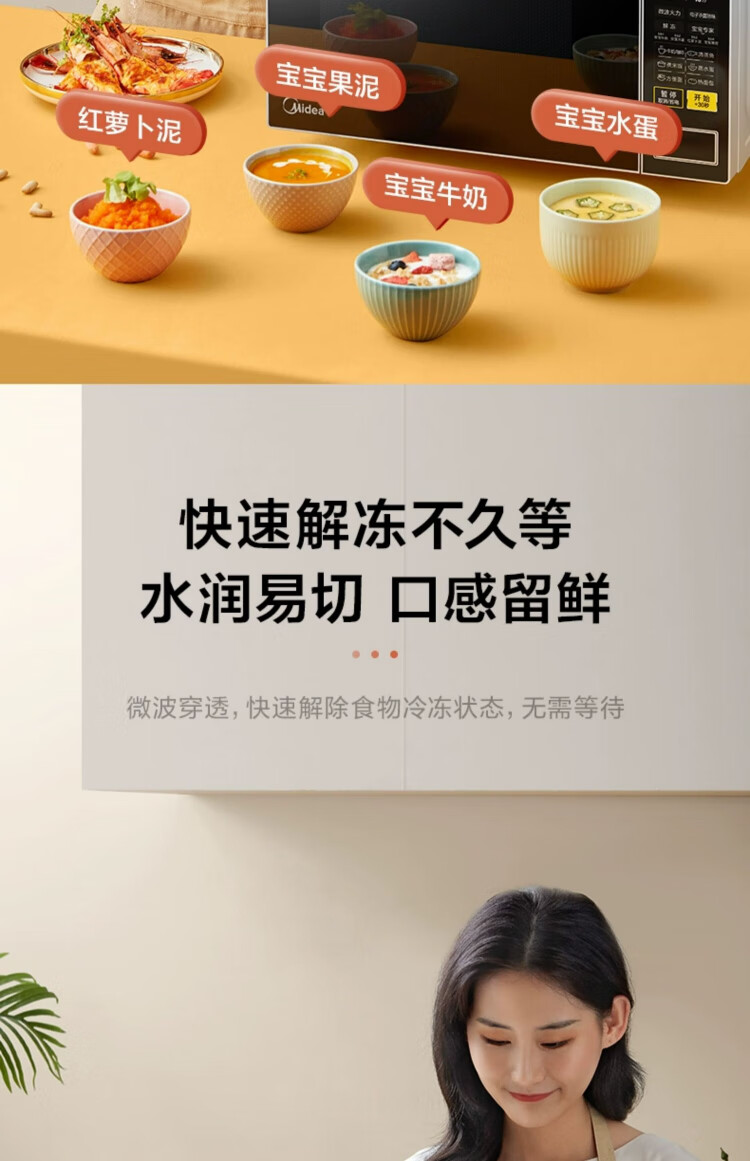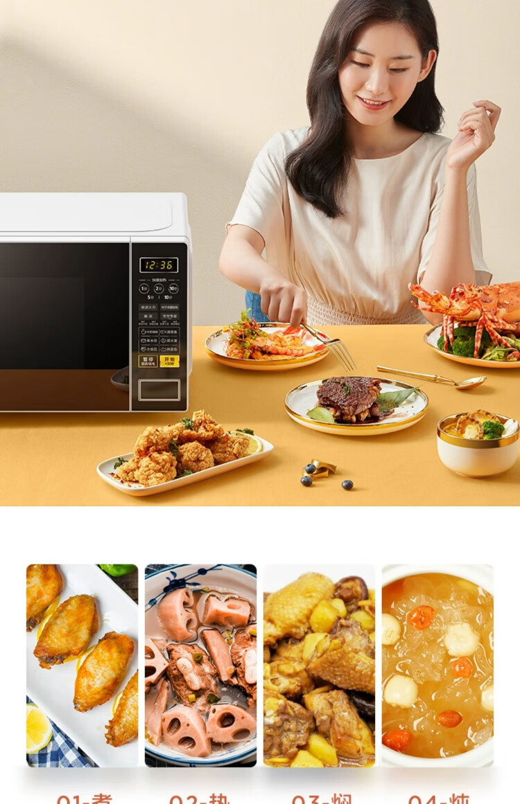Midea microwave oven household small 20-liter turntable heating smart menu one-click defrost sterilization electronic deodorization membrane button (M1-L213C)