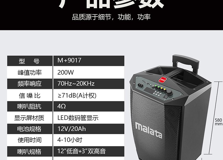 Malata M+9017C outdoor electric acoustic guitar folk singing instrument speaker square dance performance audio wireless Bluetooth home trolley speaker U-section microphone 12 inches