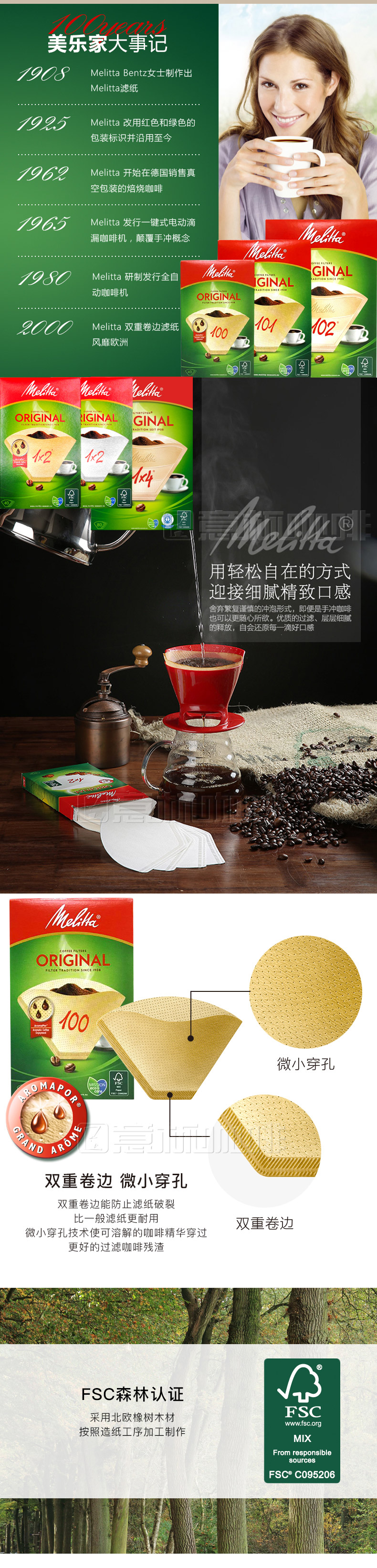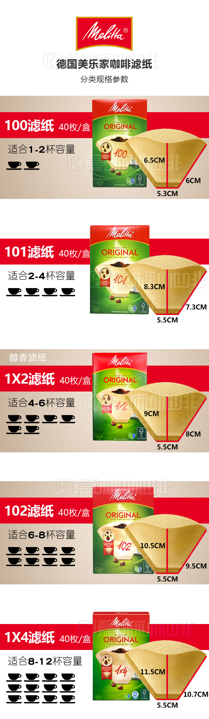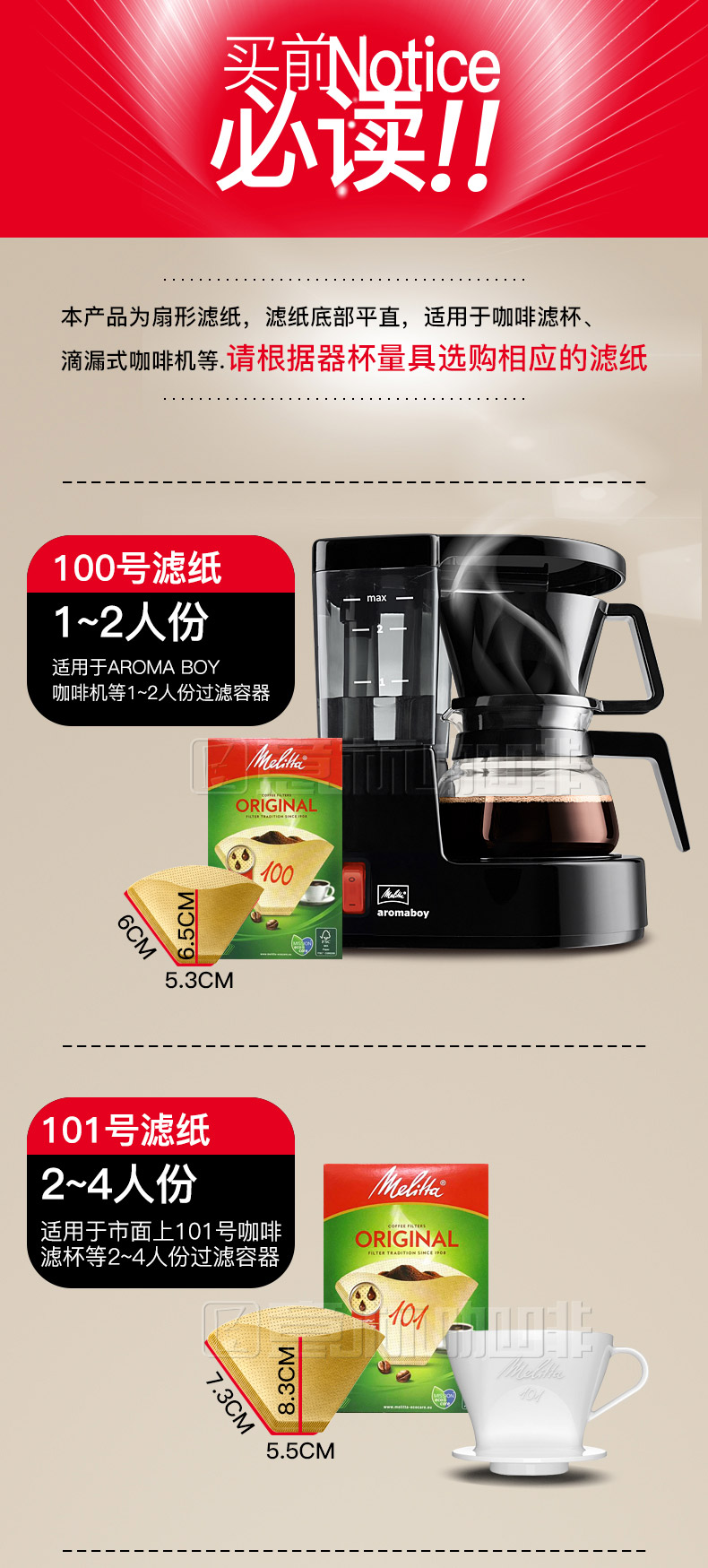 Melitta hand-brewed coffee filter paper, wood coffee powder filter paper bag, filter bag, imported from Germany, mellow flavor 1x2 type, 80 sheets