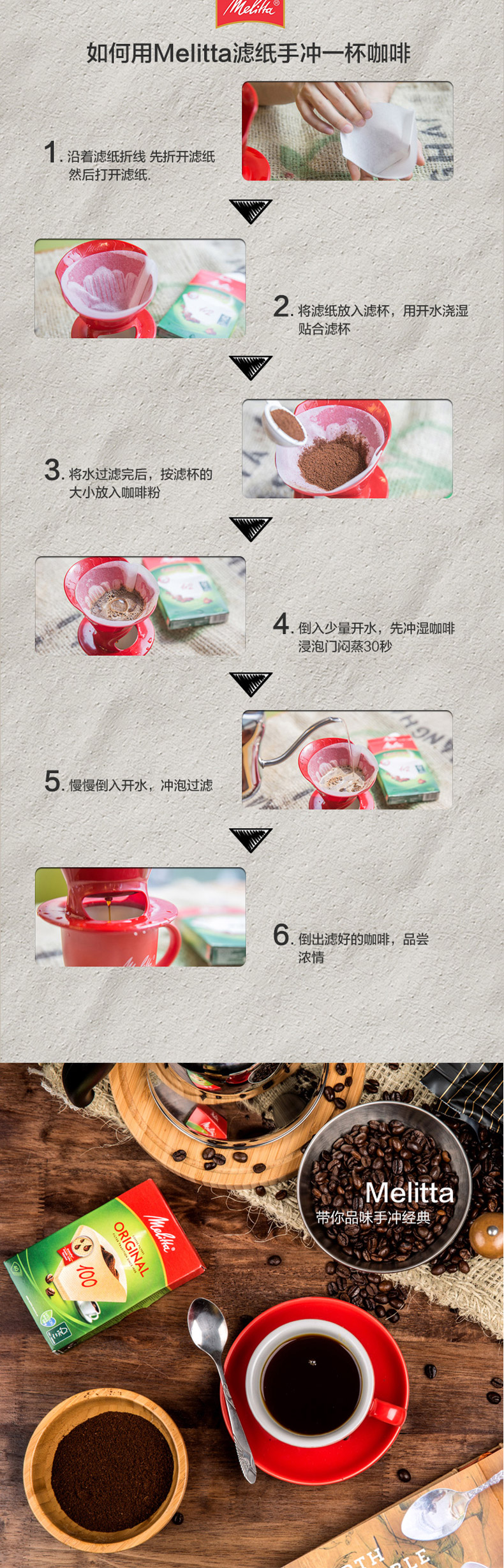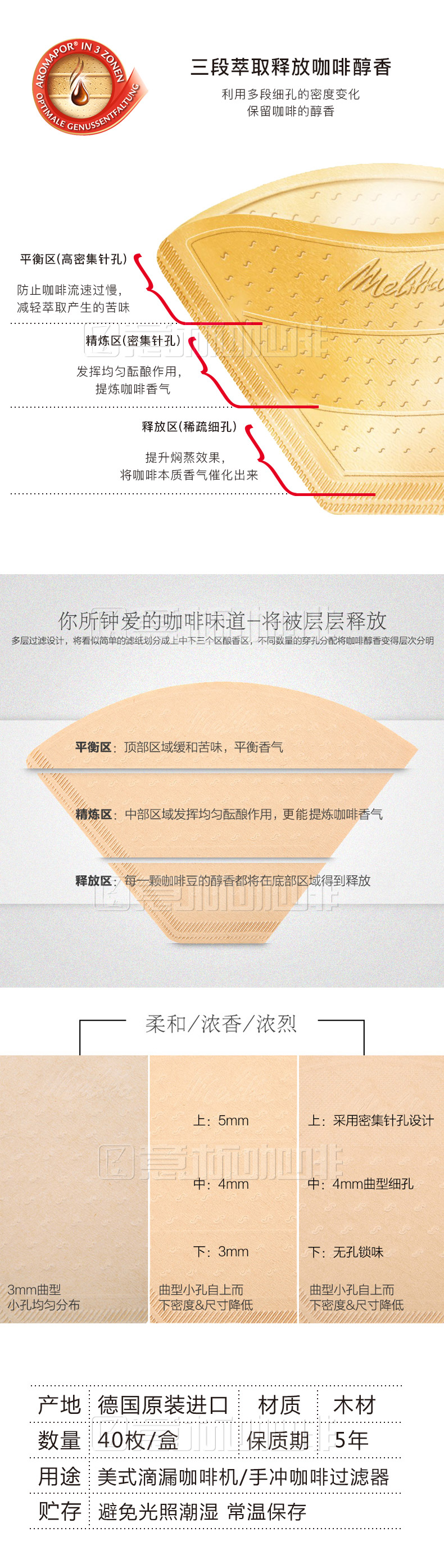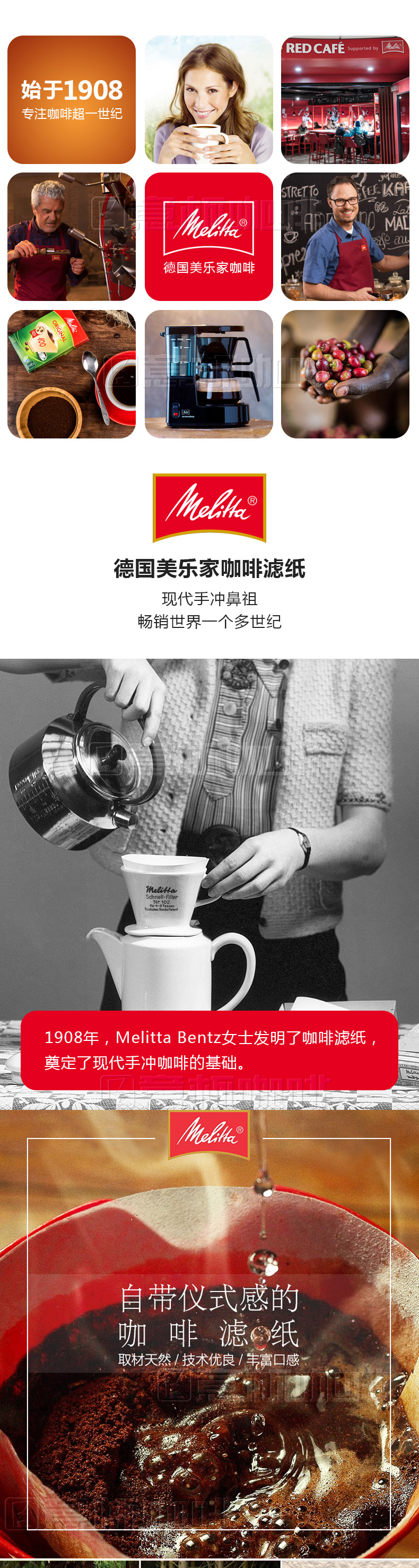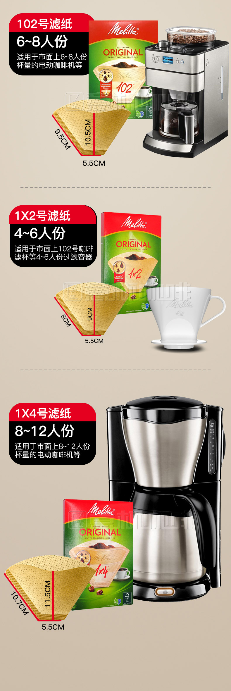 Melitta hand-brewed coffee filter paper, wood coffee powder filter paper bag, filter bag, imported from Germany, mellow flavor 1x2 type, 80 sheets