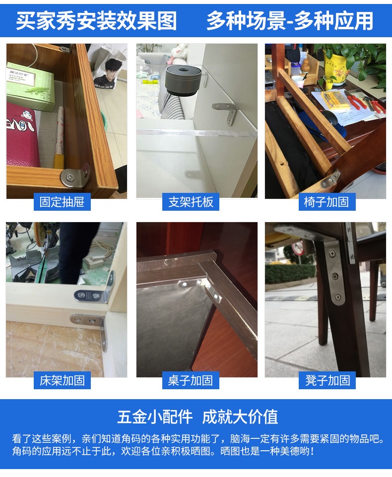 Thickened stainless steel corner code holder triangle bracket 90-degree right-angle furniture connector angle iron piece L-shaped L-shaped 40*40*17*3+self-tapping 5 sets