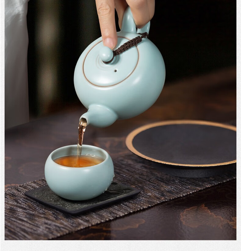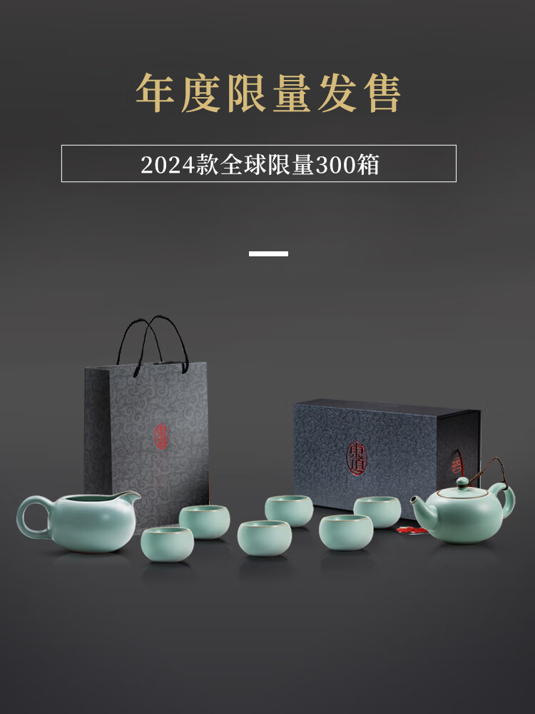 Dongdao Ru Kiln Henan Heritage Fuyuan Tea Set Ceramic Kung Fu Tea Set Ru Porcelain High-end Tea Set Complete Gift Box Fuyuan Teapot Half Set 8 Piece Set 25 Styles