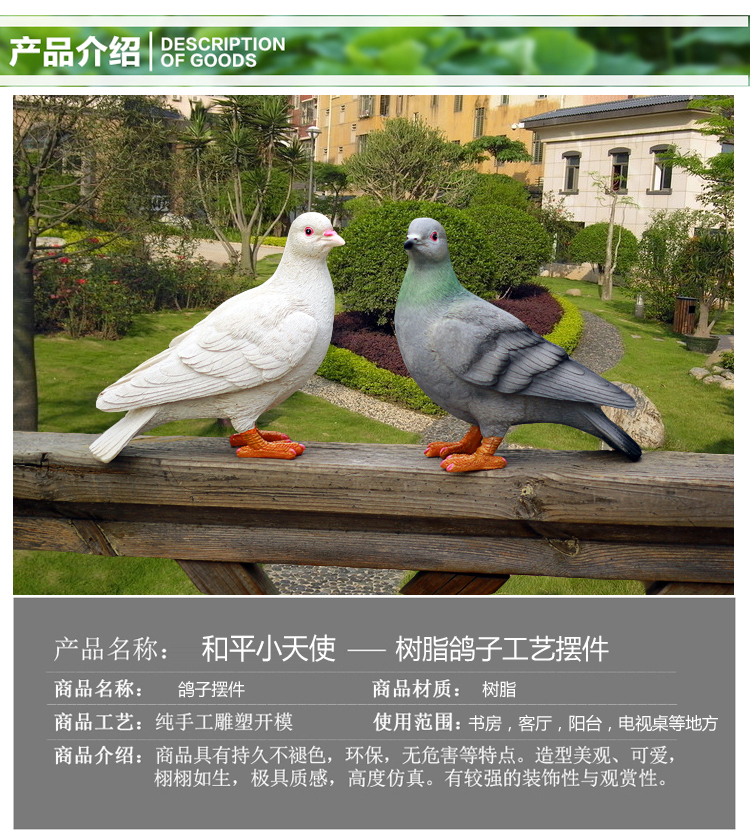 Huixiang creative outdoor garden courtyard balcony decorative ornaments handicrafts simulation animal sculpture dove ornaments a pair of white doves