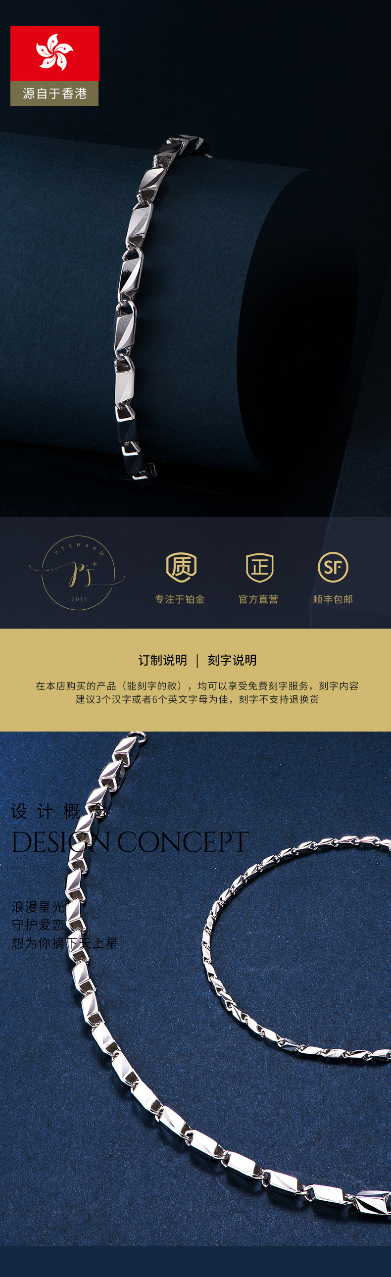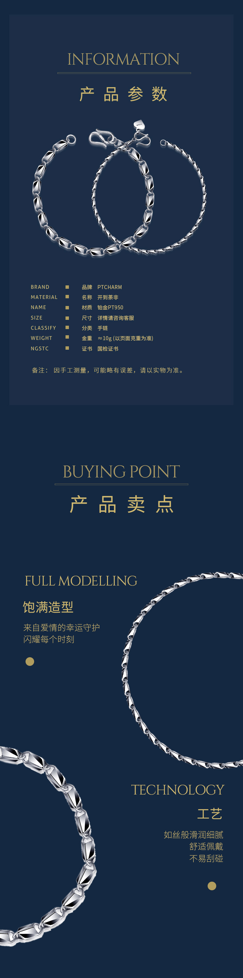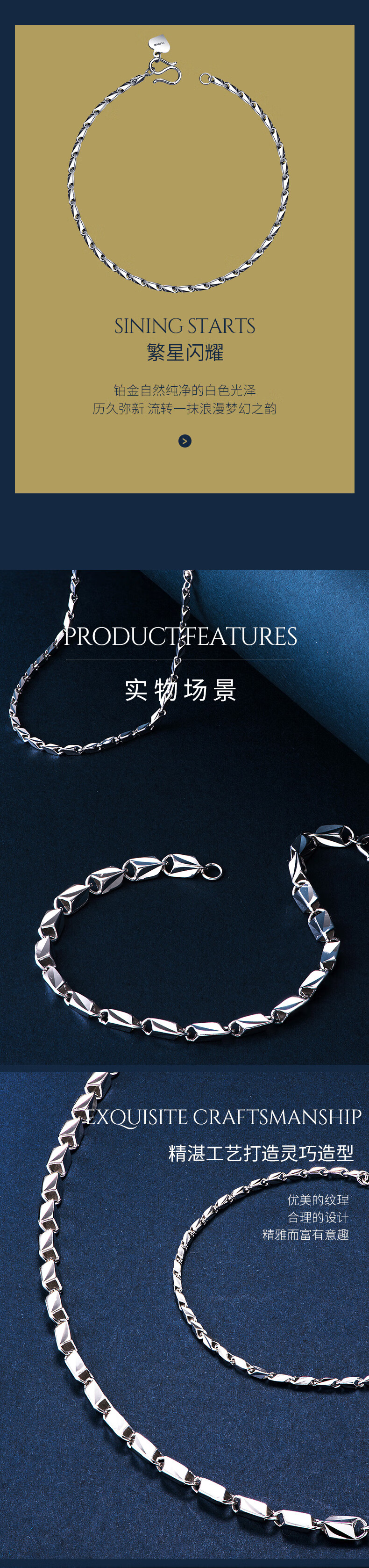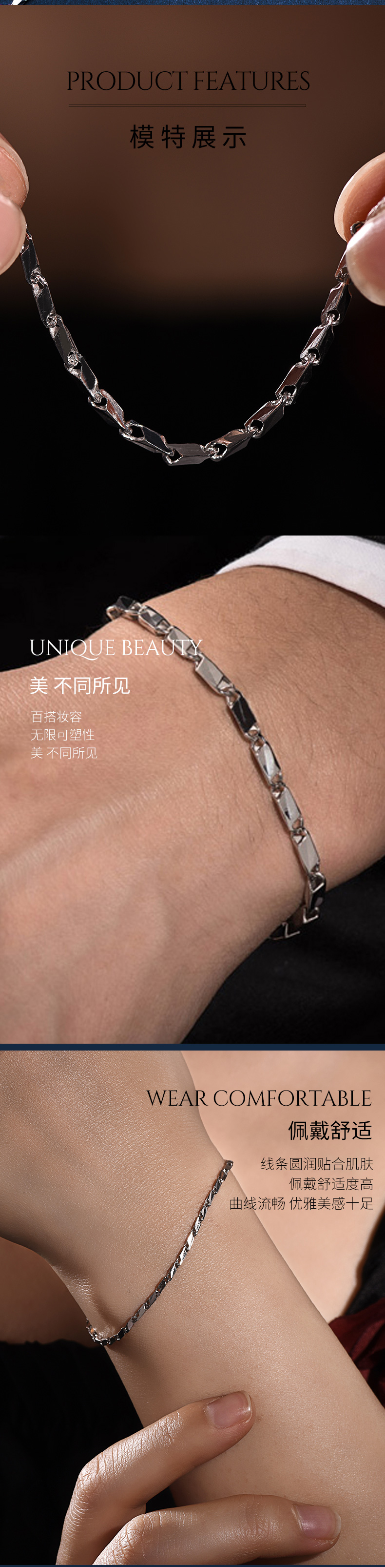 Pt.Charm Platinum Bracelet Couple Style pt950 Platinum Bamboo Chain Chinese Valentine's Day Simple Fashionable Versatile Guardian Bracelet Ready-made Men's Style 11.6-11.7g Long 16+3 Adjustable