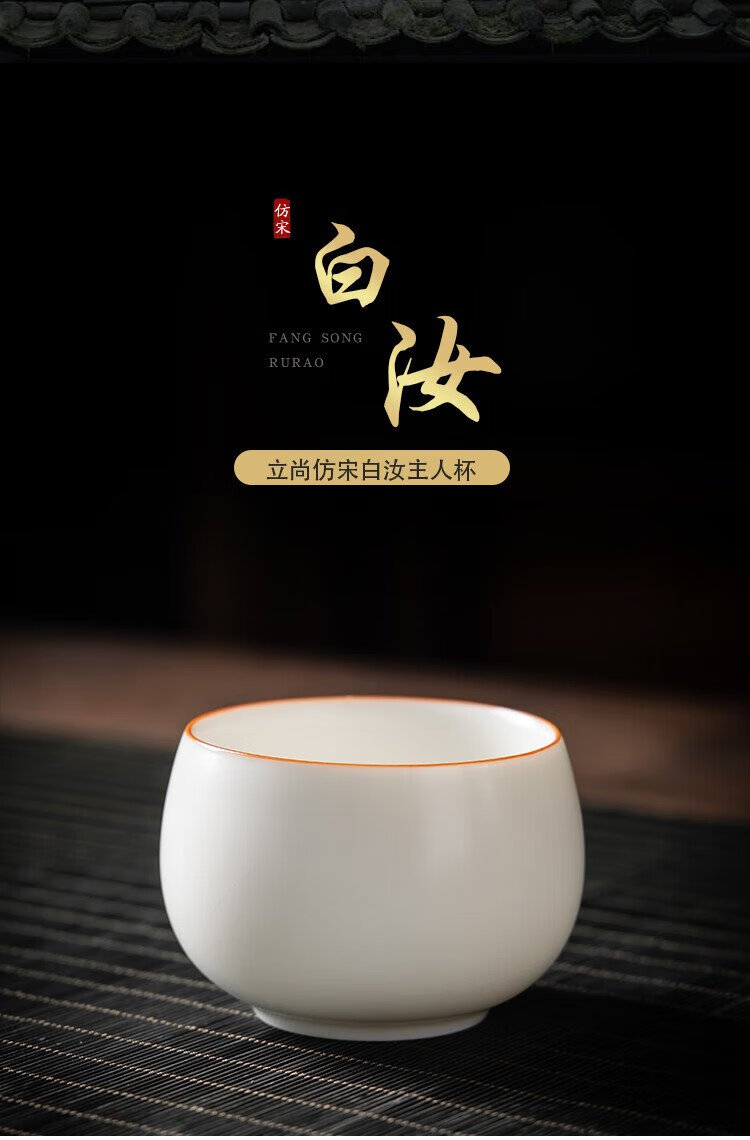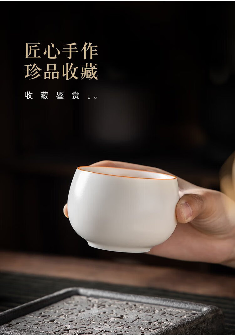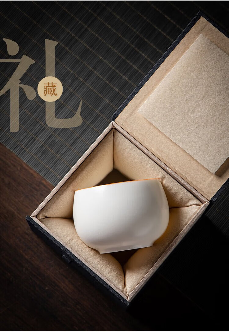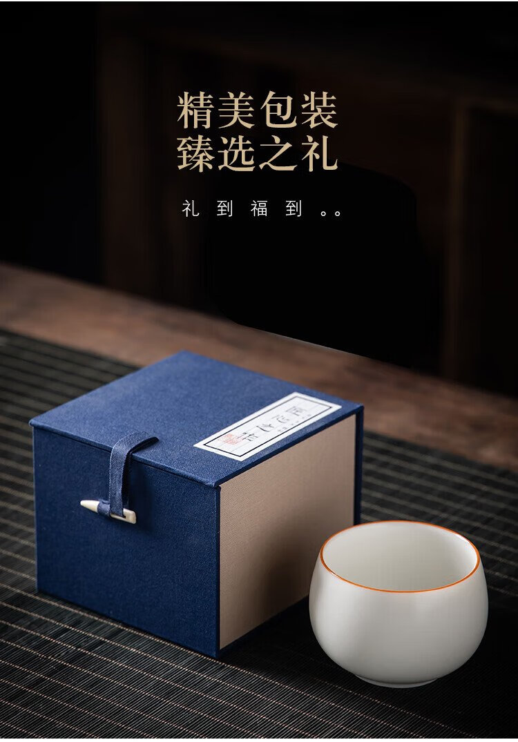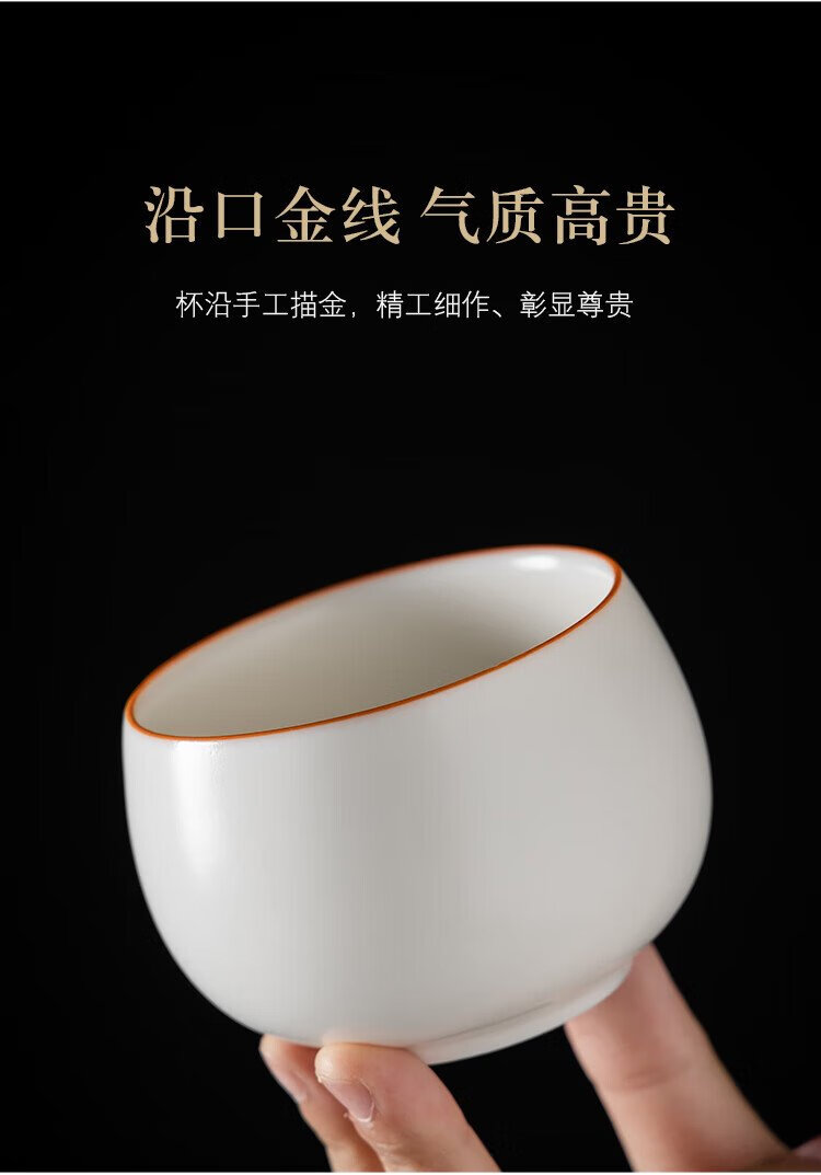 Gold inlaid jade tea cup master cup tea set white ceramic Ru kiln can be grown and opened to give a gift box white Ru Luohan cup
