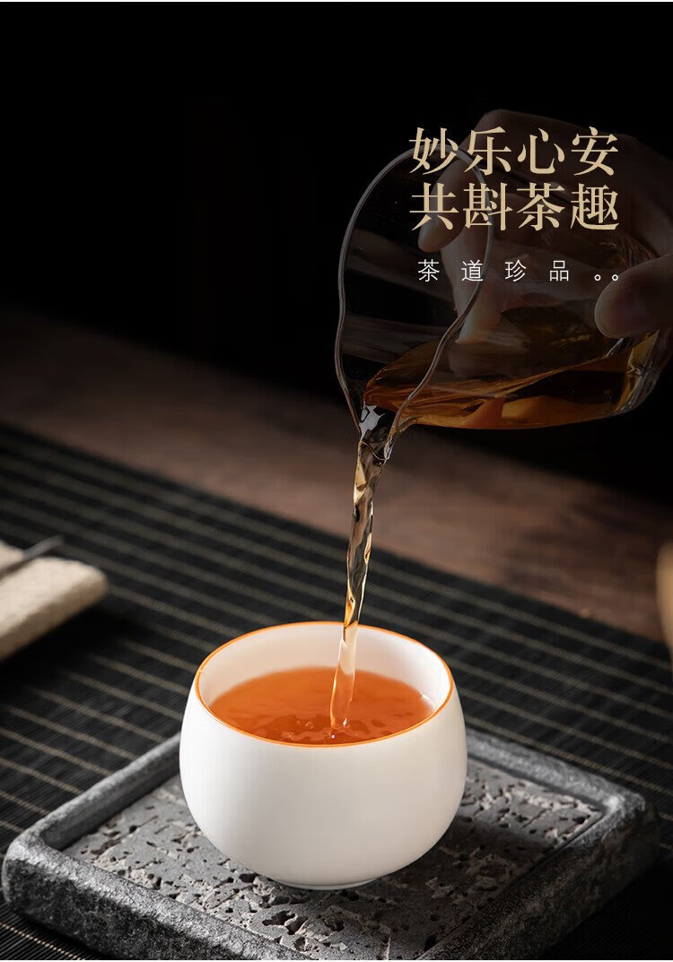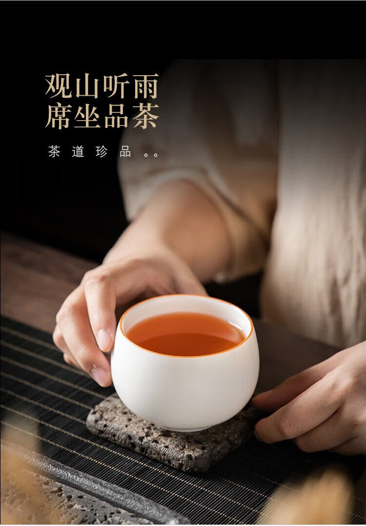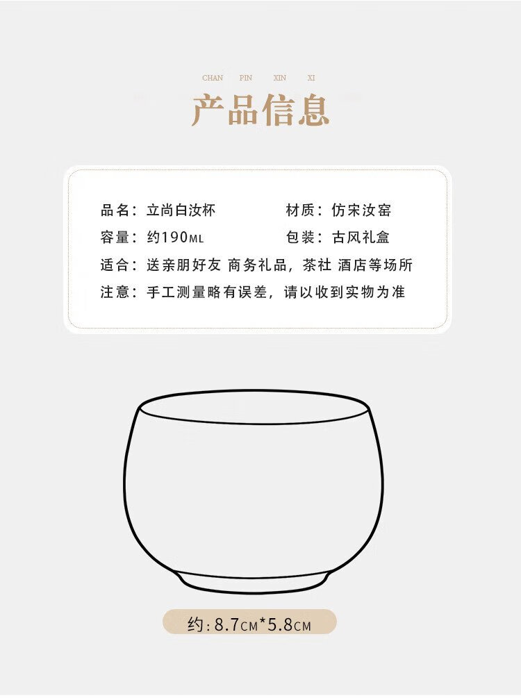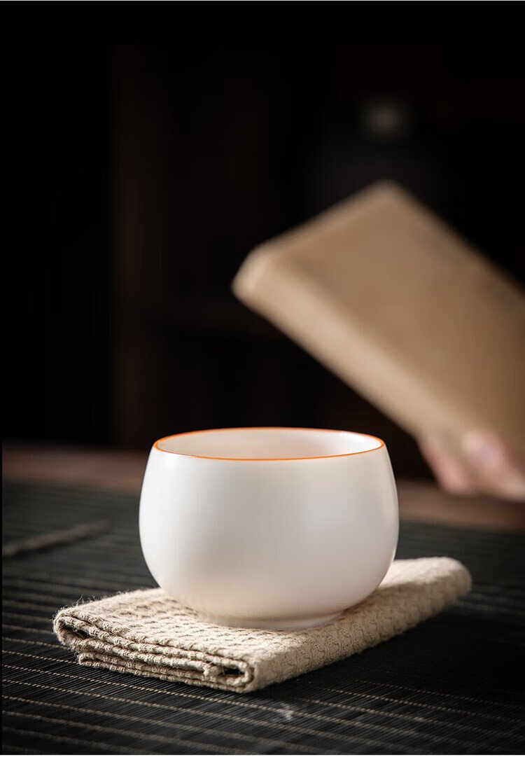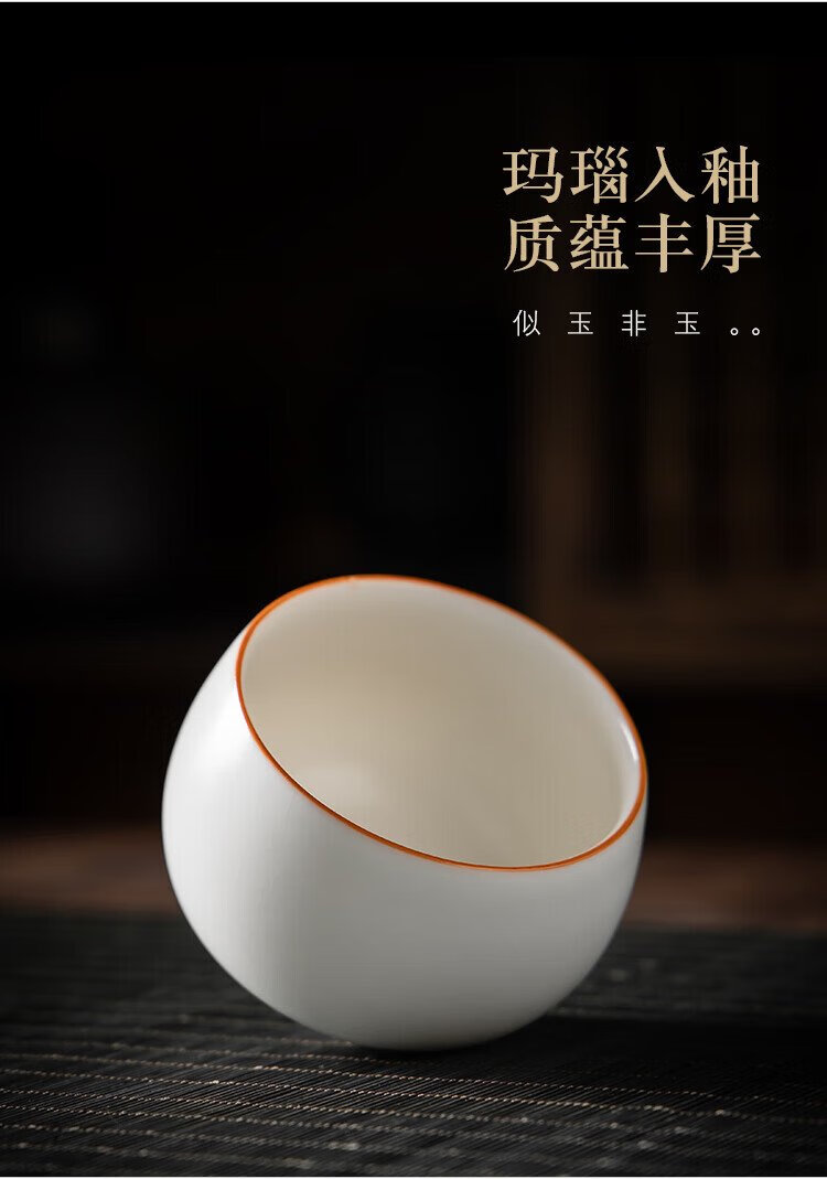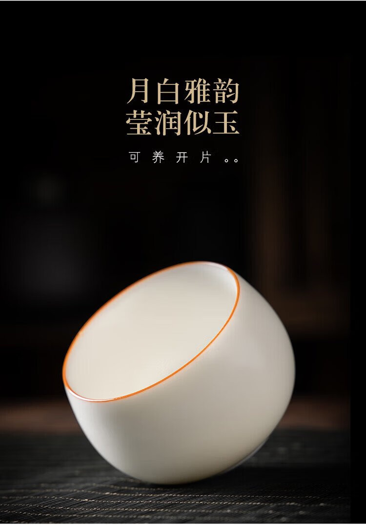 Gold inlaid jade tea cup master cup tea set white ceramic Ru kiln can be grown and opened to give a gift box white Ru Luohan cup