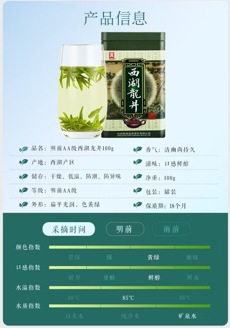 Gongpai Green Tea Heritage West Lake Longjing Tea AA Grade 100g 2025 Mingqian Canned