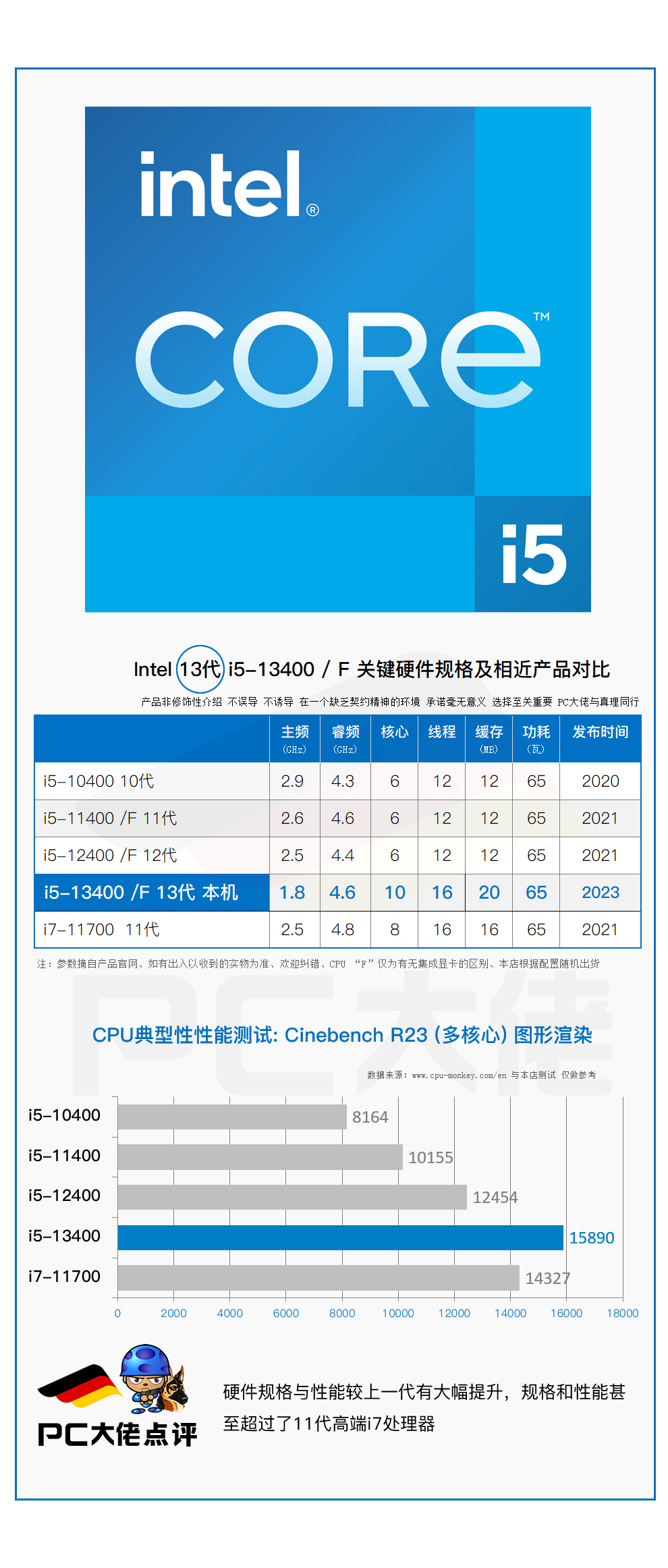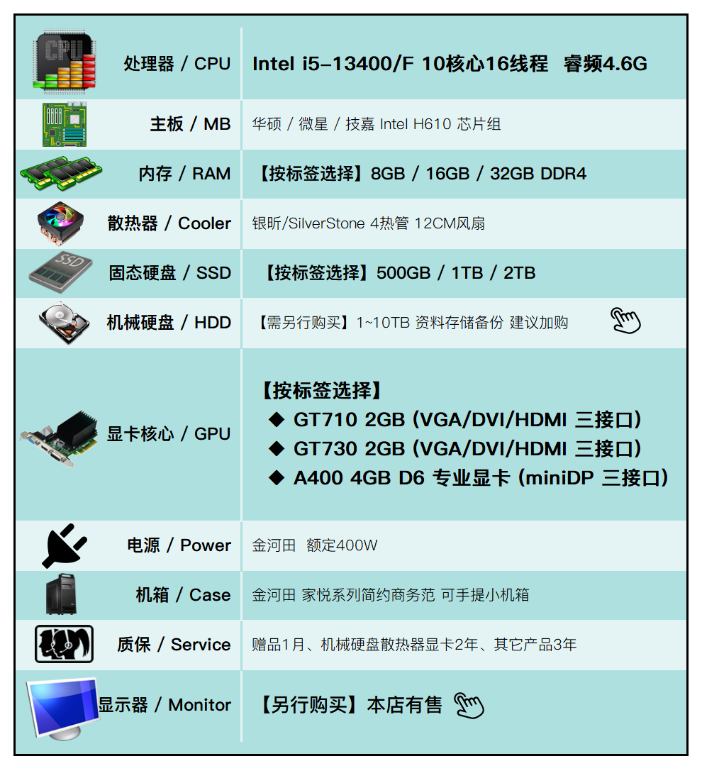 PC Boss i5-13400/F 10 cores 16 threads office business home DIY computer desktop host 16GB memory + 1TB SSD solid state drive GT710 2GB independent graphics card 3 interfaces