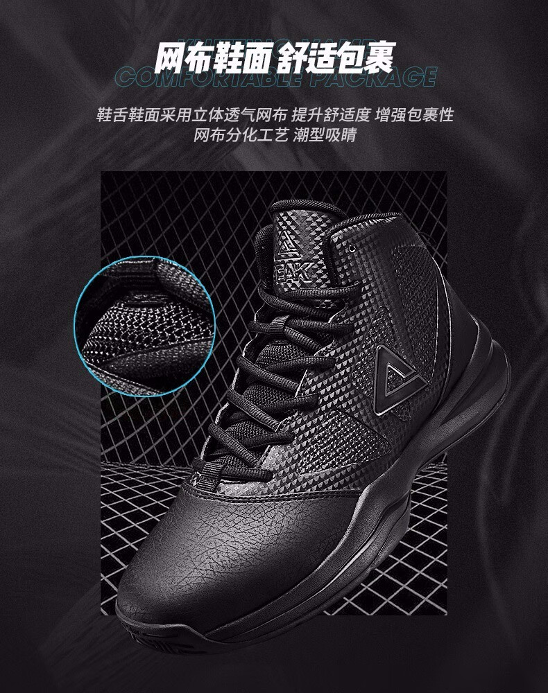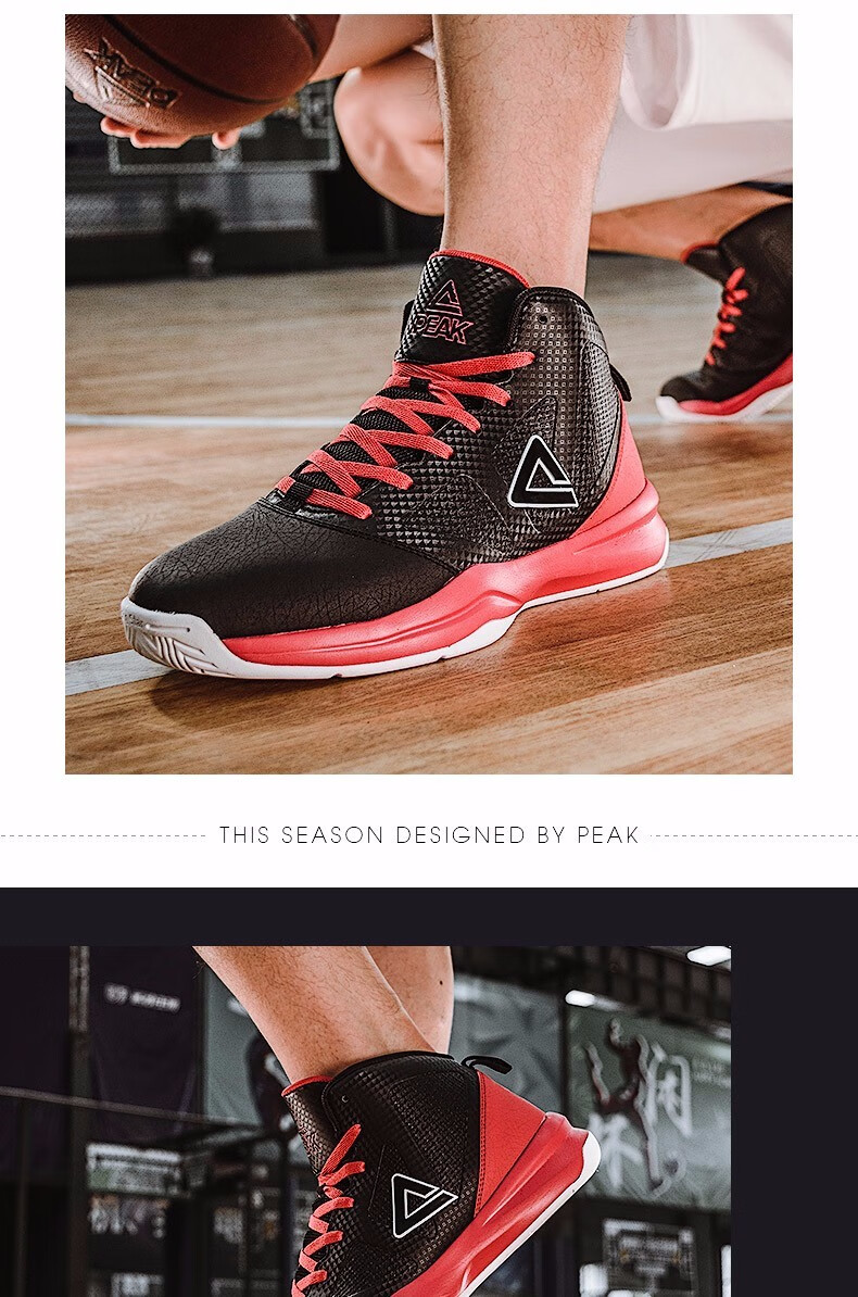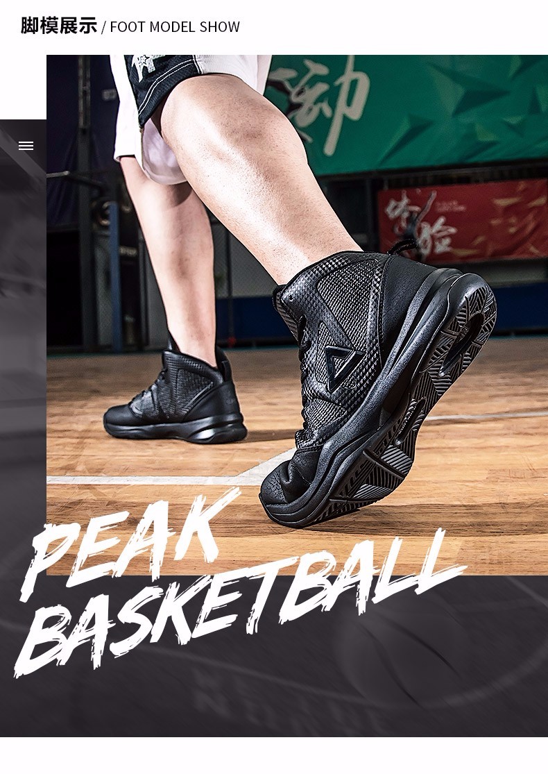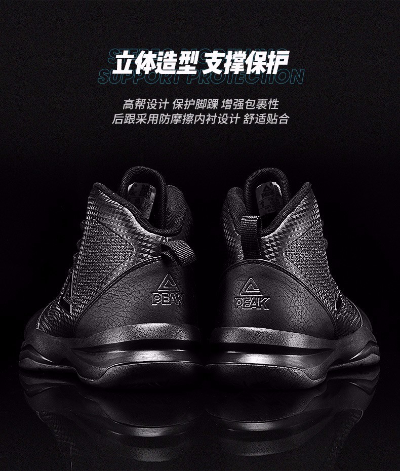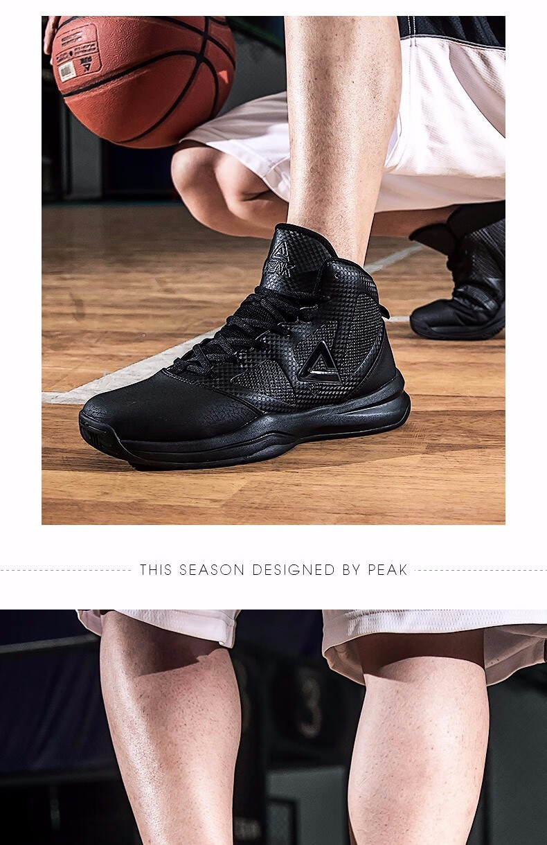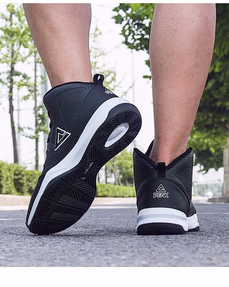 Peak Basketball Shoes Men's Winter Shoes Cushioning Wear-Resistant High-top Leather Boots Students Anti-Slip Sports Shoes Men Black/Dark Gray 201 41