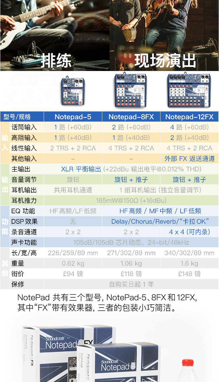 Soundcraft NotePad series professional mixer live broadcast conference reverb effect mixer stage performance recording sound card NotePad-12FX
