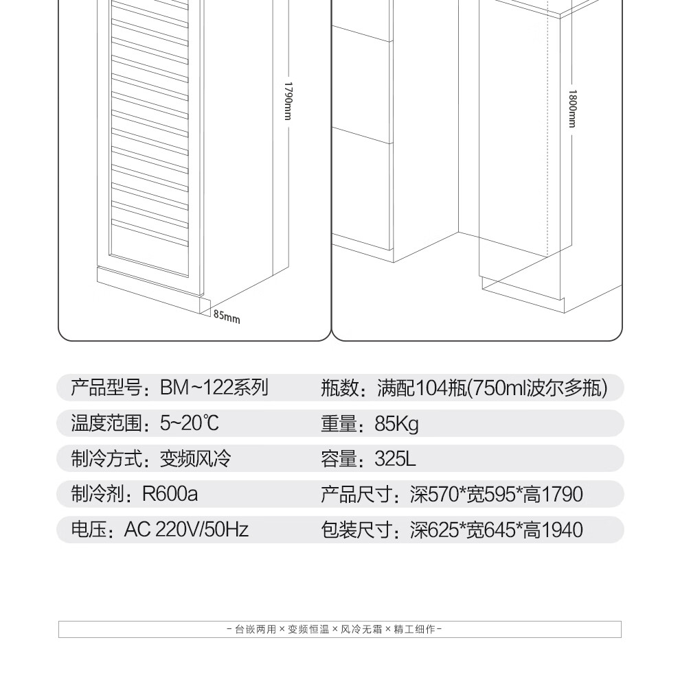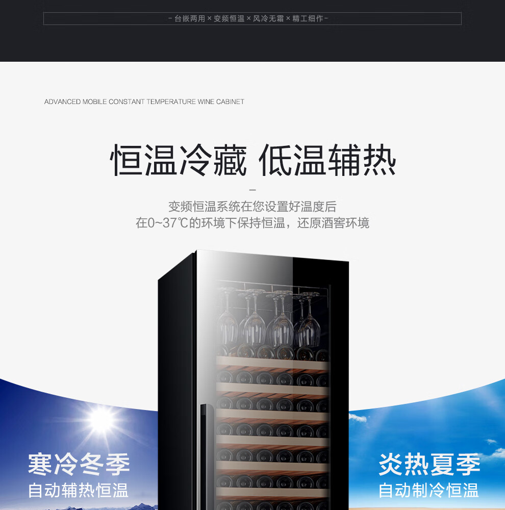 PULADI frequency conversion first-class energy efficiency red wine cabinet constant temperature wine cabinet embedded frost-free wine compressor home living room smart office refrigerator first-class energy efficiency frequency conversion thin model independent dual temperature model 318L