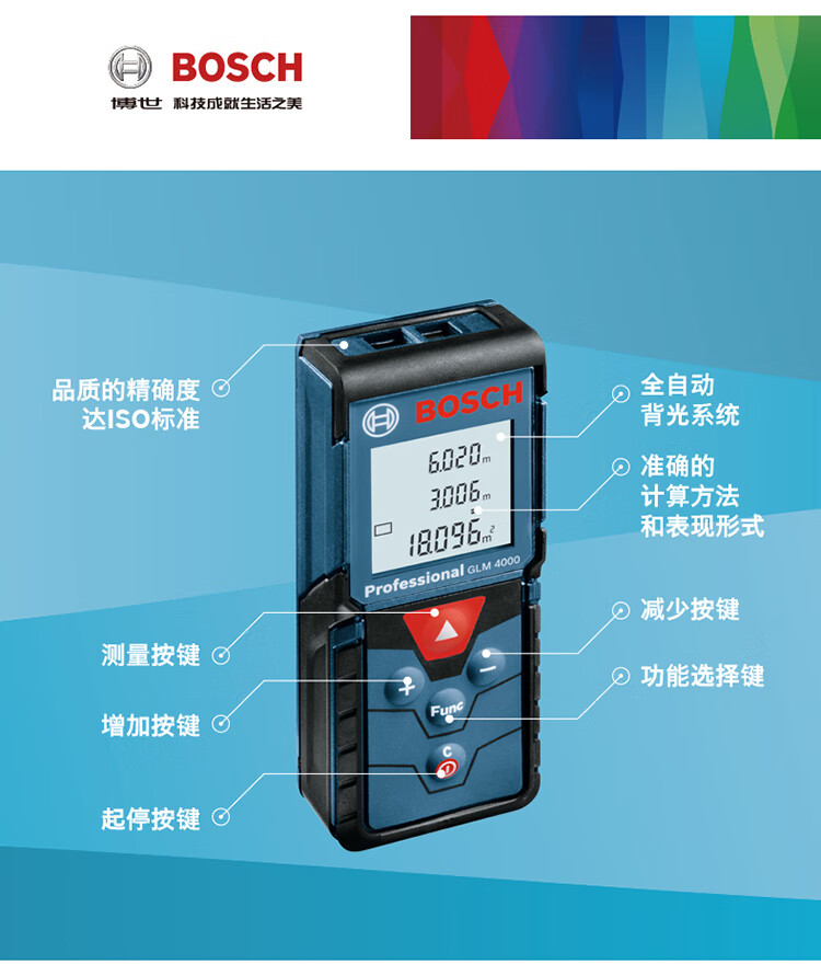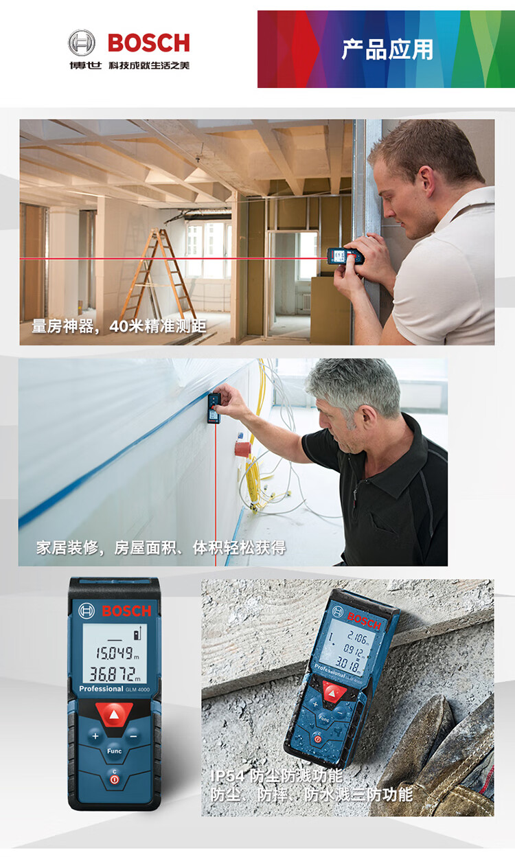 博世(BOSCH)40米红外线激光测距仪测量仪量房仪电子尺卷尺GLM 4000