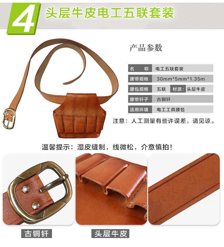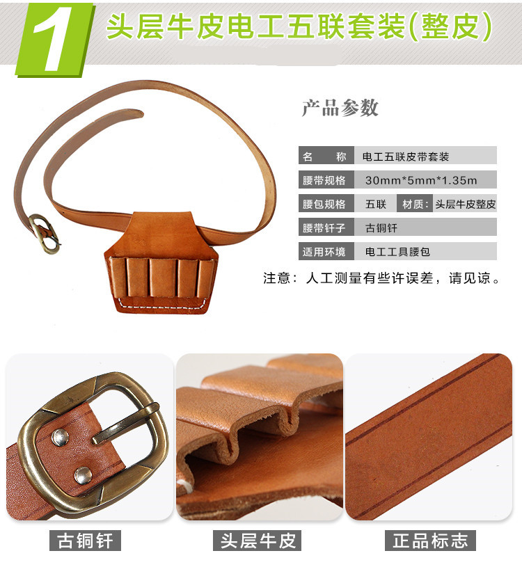 Electrical belt first layer pure cowhide electrician belt holster tool bag pliers cover electrician five-link leather triple leather five-link first layer five-link belt not included