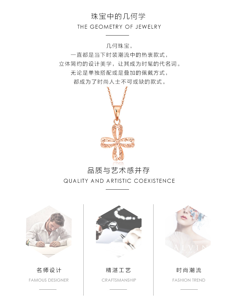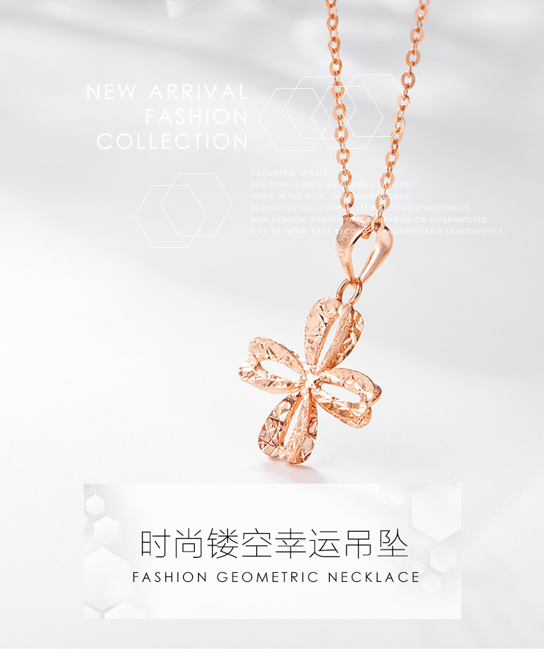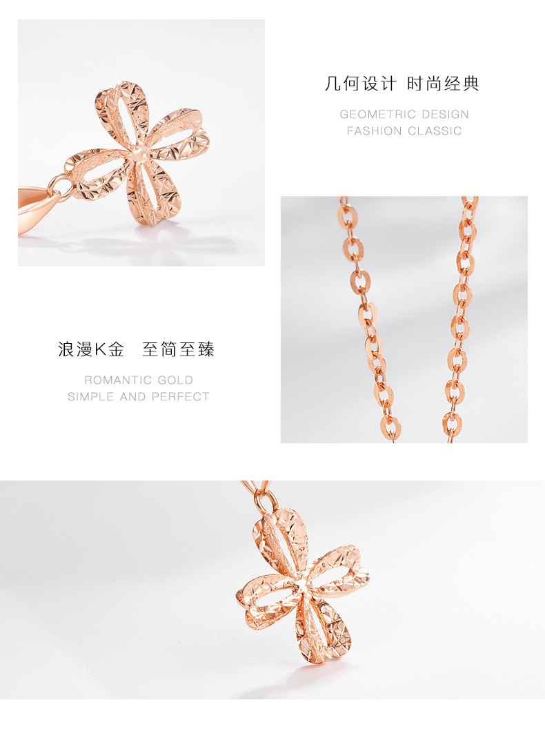 Ming brand jewelry 18K gold color rose gold hollow four-leaf clover pendant pendant for women CSC0068 pricing random split flower single pendant about 0.51-0.66 grams