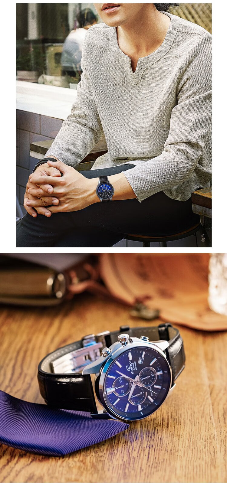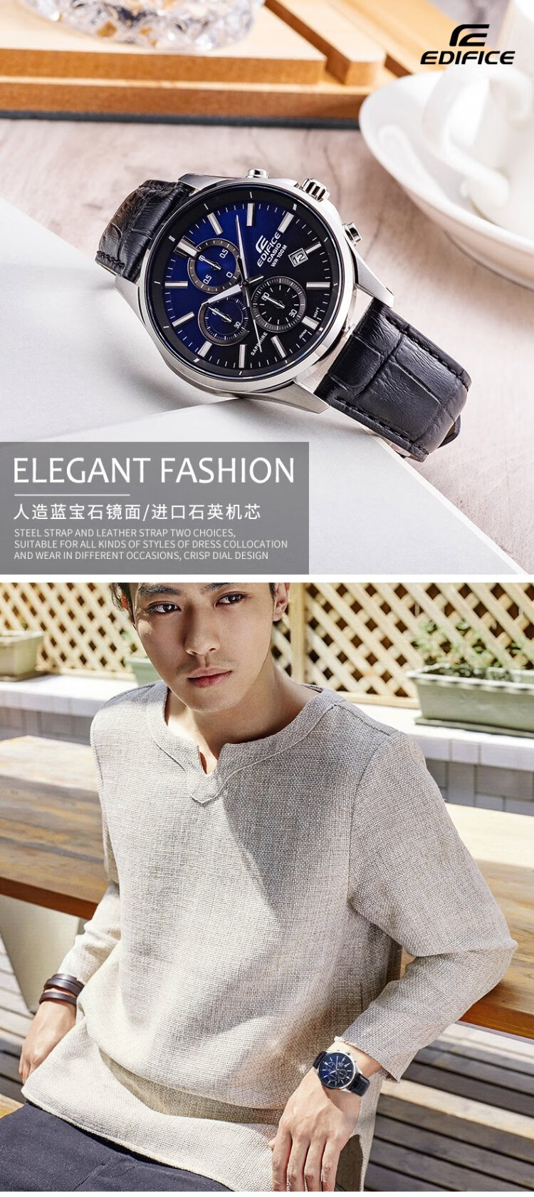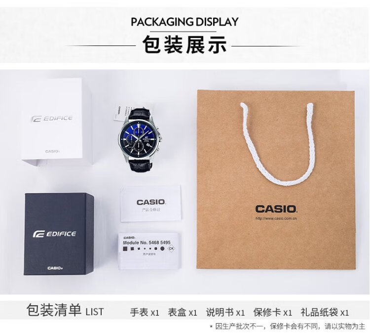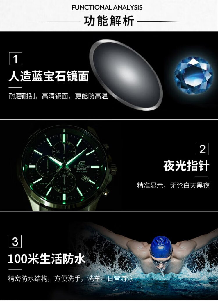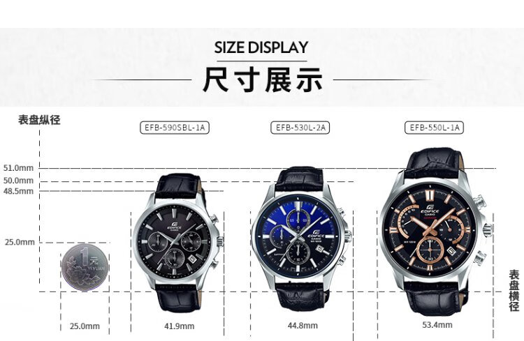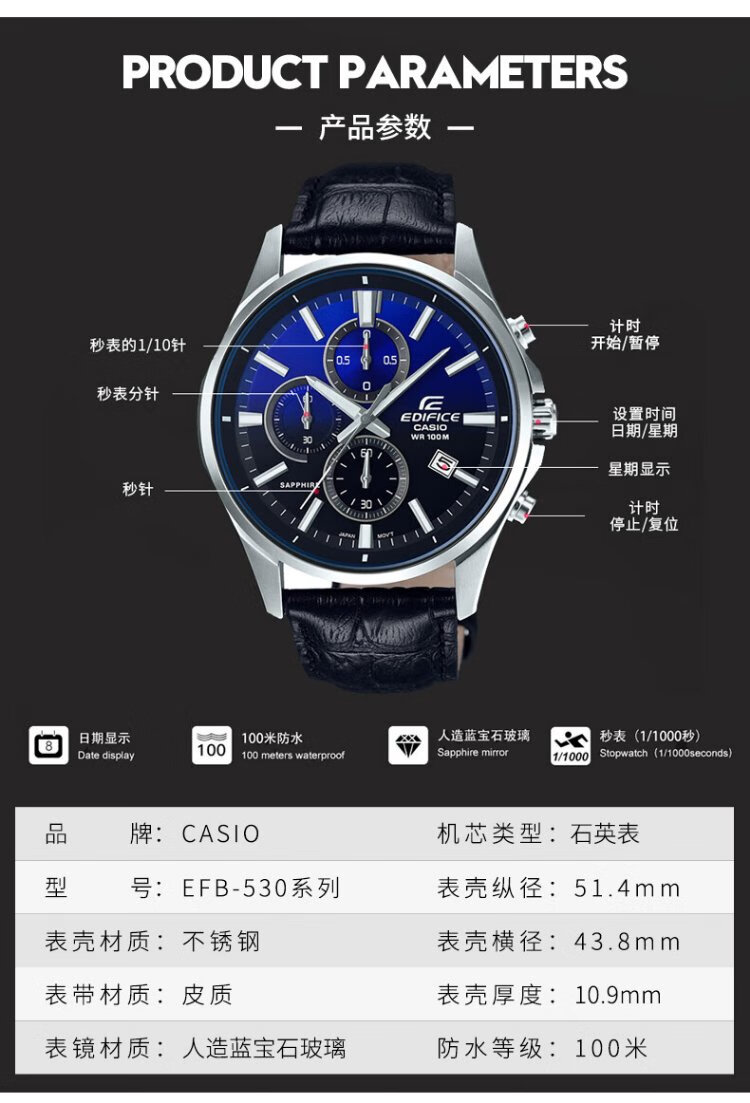 Casio (CASIO) business casual belt steel watch men's Japanese and Korean watch waterproof quartz men's watch New Year gift for boyfriend EFB-530L-2A sapphire mirror
