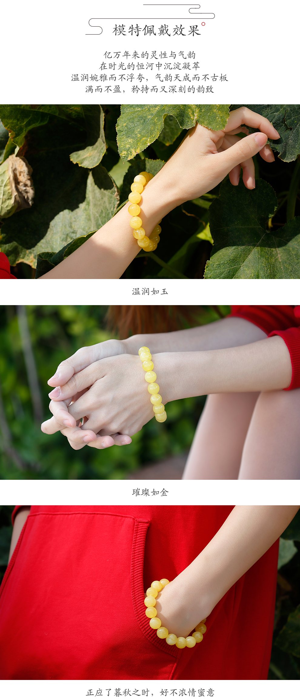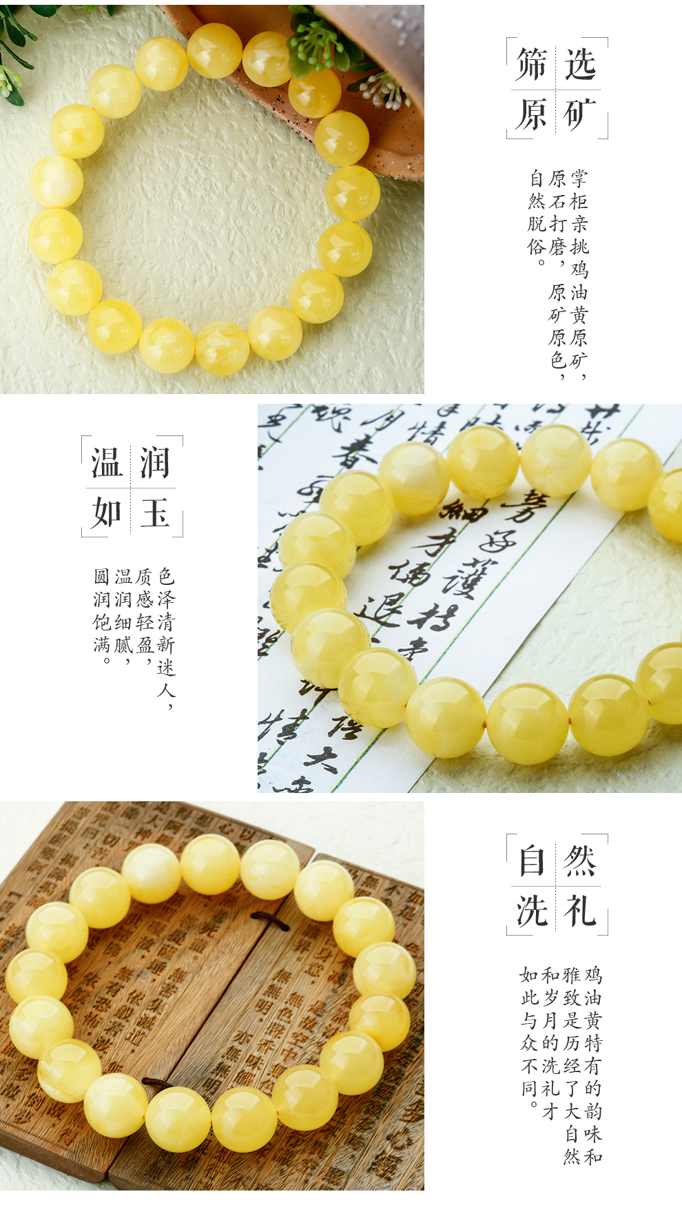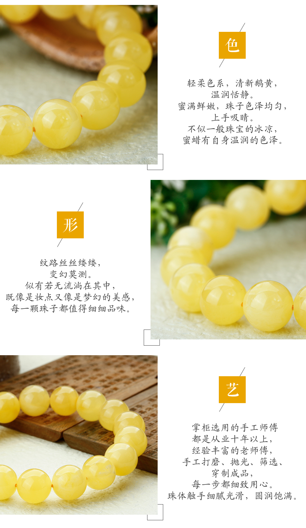 Lv Nong Jewelry New Honey Chicken Fat Yellow Beeswax Bracelet Worry-free No-Bake Color Bracelet Birthday Gift for Men and Women Diameter Approximately 8-8.5mm Single Circle/Certificate + Gift Box
