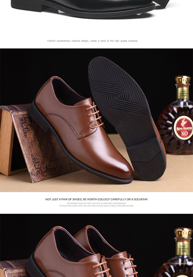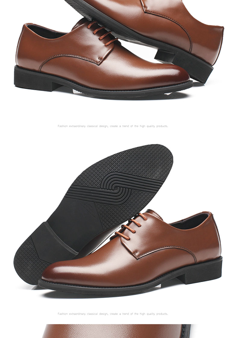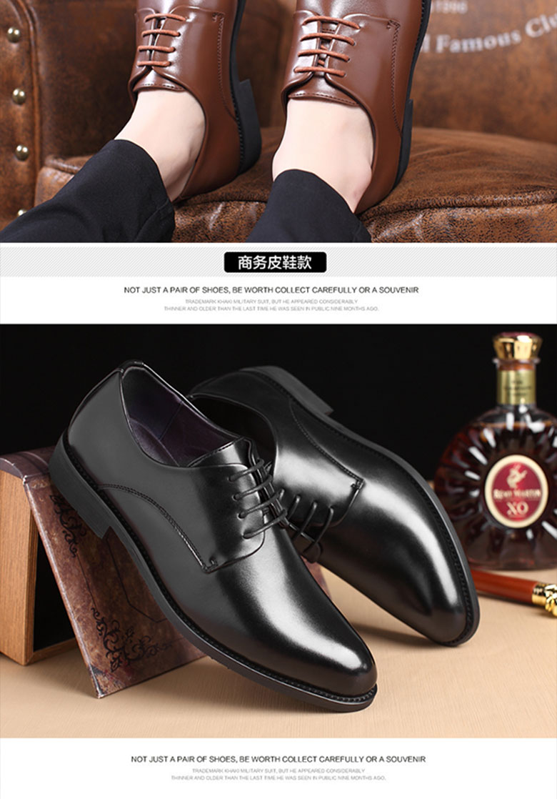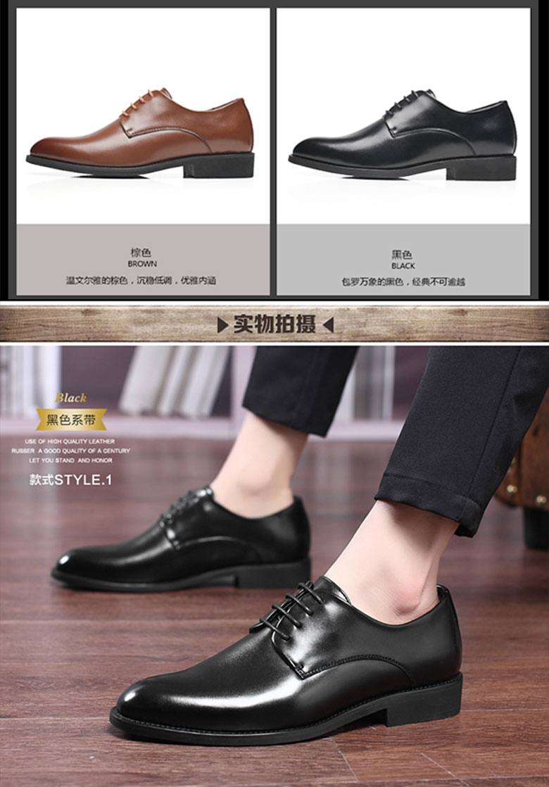 Dragonfly brand men's leather shoes cowhide business formal casual youth point-toe shoes heightening British heightening lace-up men's shoes brown 42