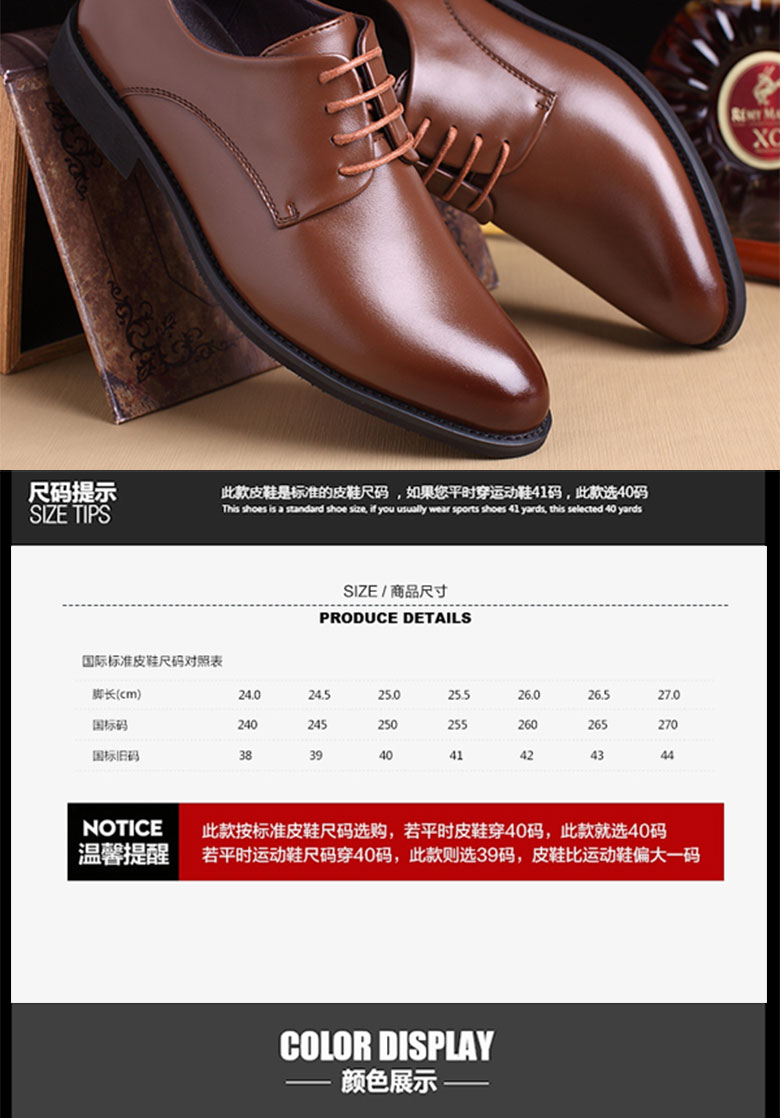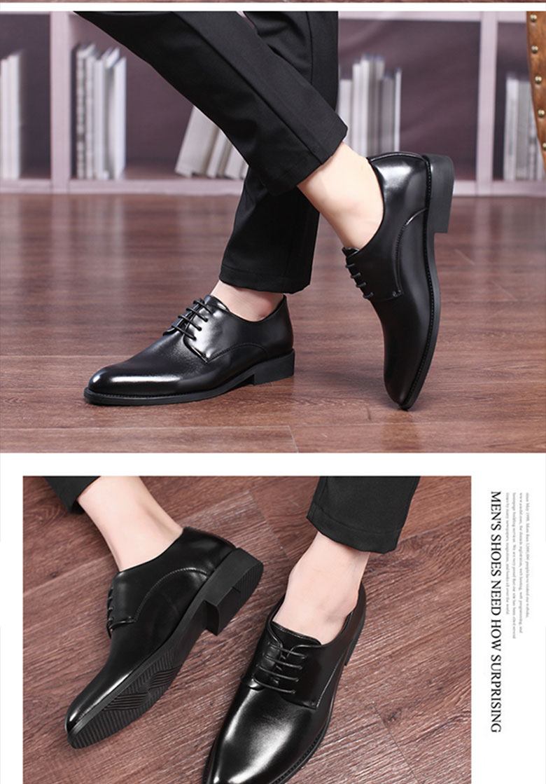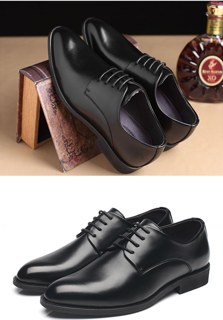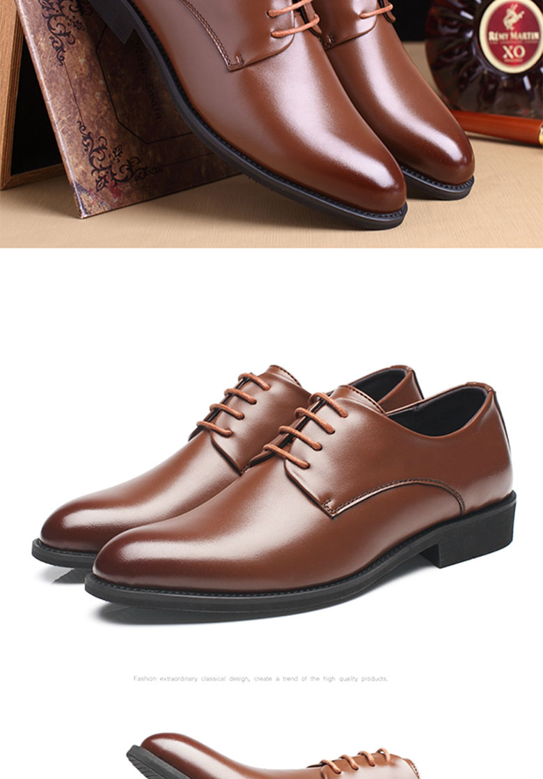 Dragonfly brand men's leather shoes cowhide business formal casual youth point-toe shoes heightening British heightening lace-up men's shoes brown 42