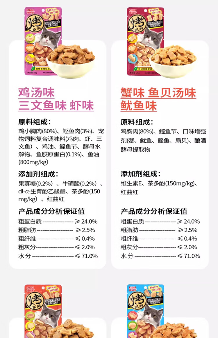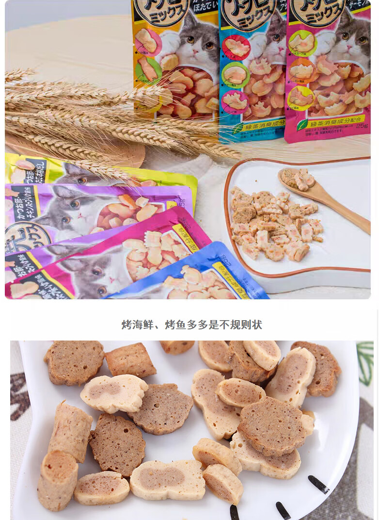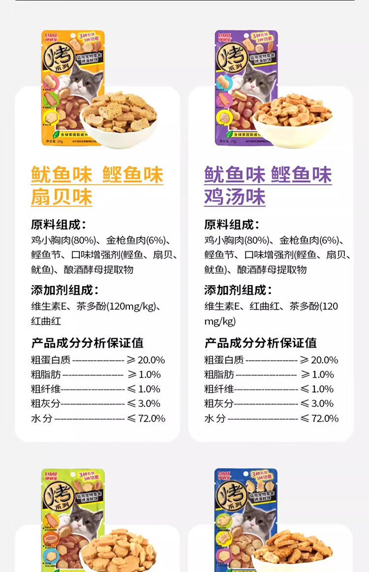 Inaba Cat Snacks Miaohao Grilled Fish Duoduo Pet Snacks Cat Biscuits with Chicken Breast Grilled Seafood Sandwich Dried Fish 12 Packs Flavor Mix