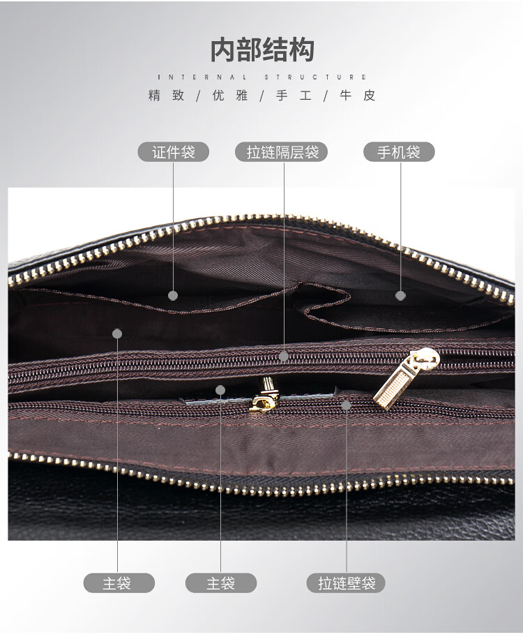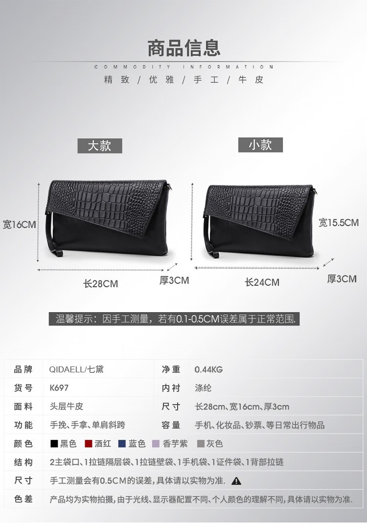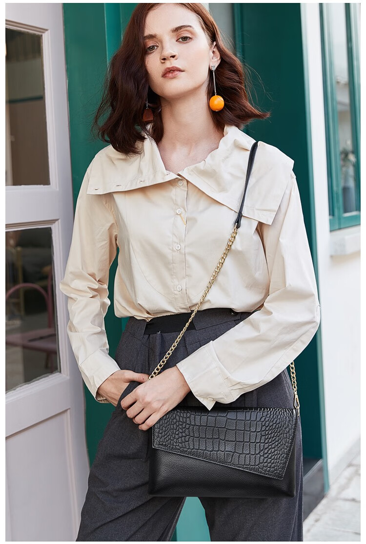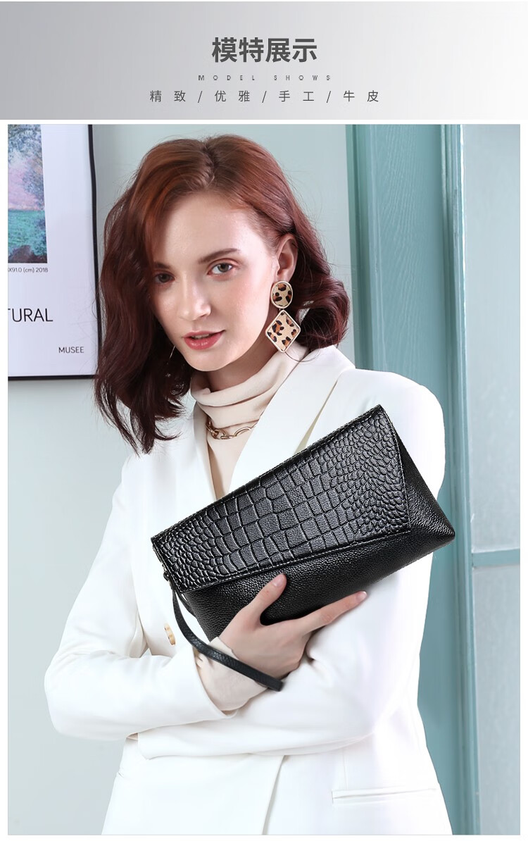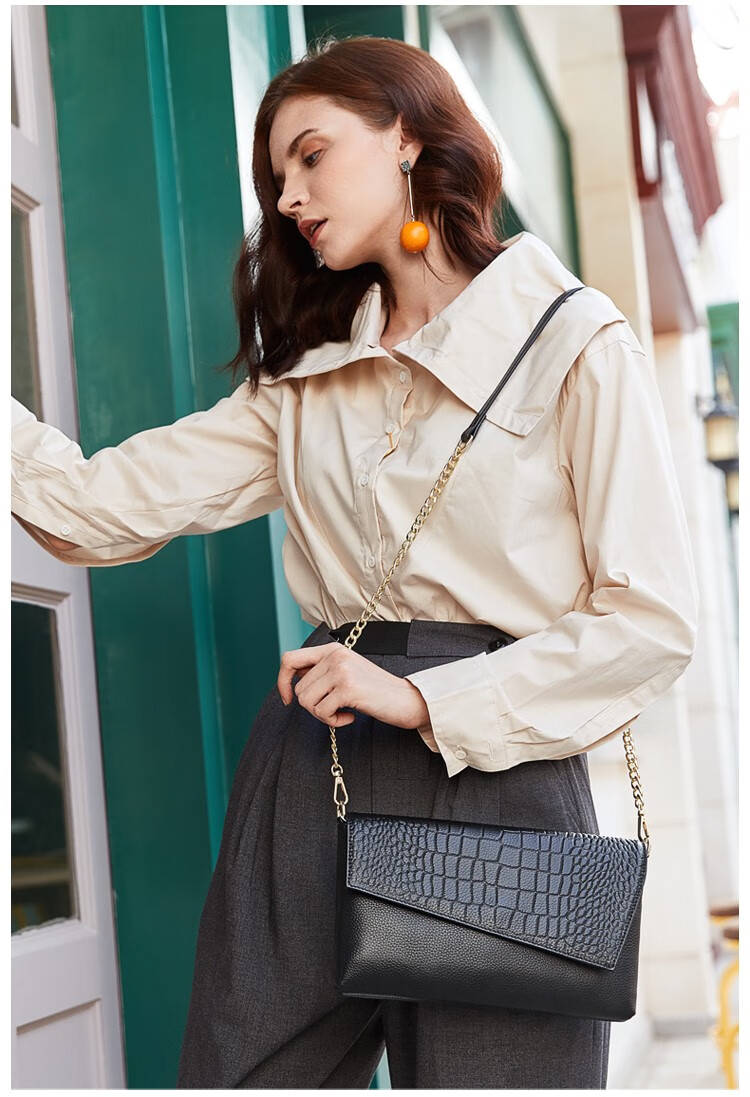 Qidell Clutch Women's Genuine Cowhide Elegant Women's Handbag Cowhide Multifunctional Clutch Bag New Trendy Single Crossbody Bag Women's Black Large Leather + Chain Shoulder Strap