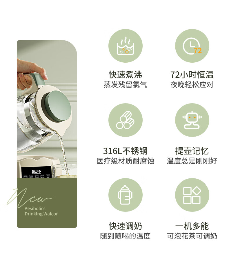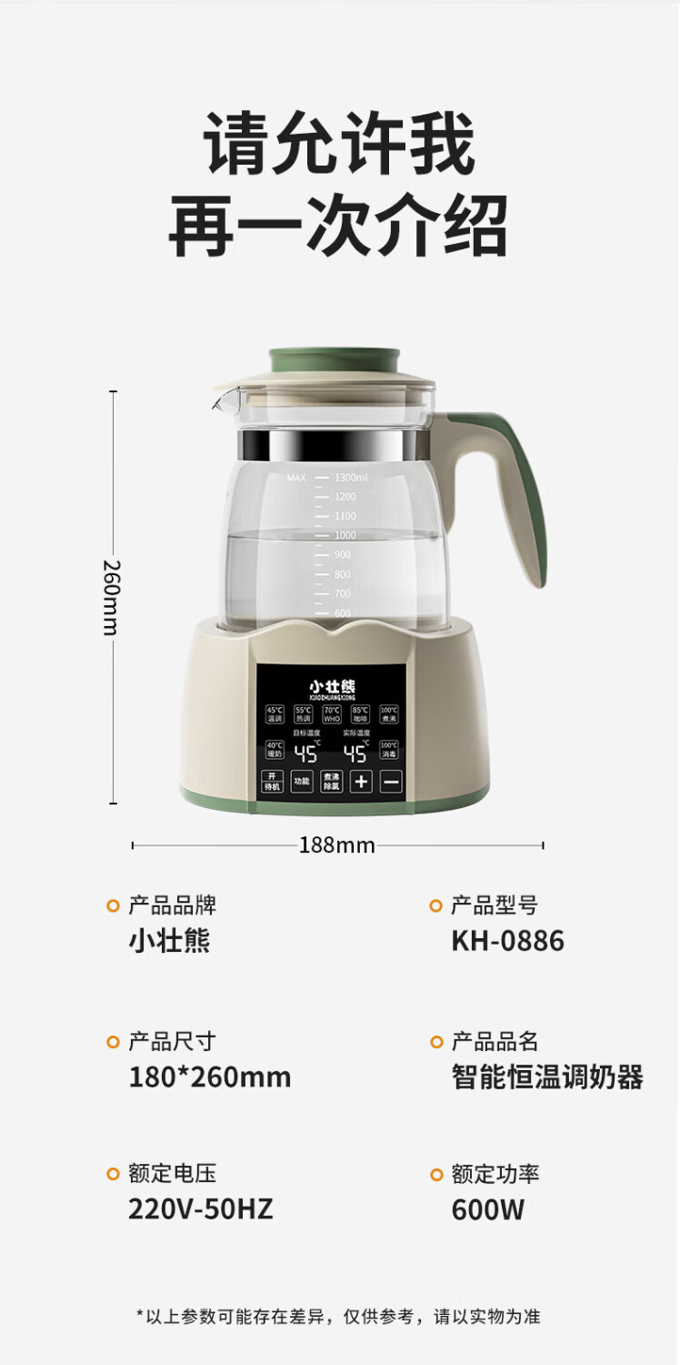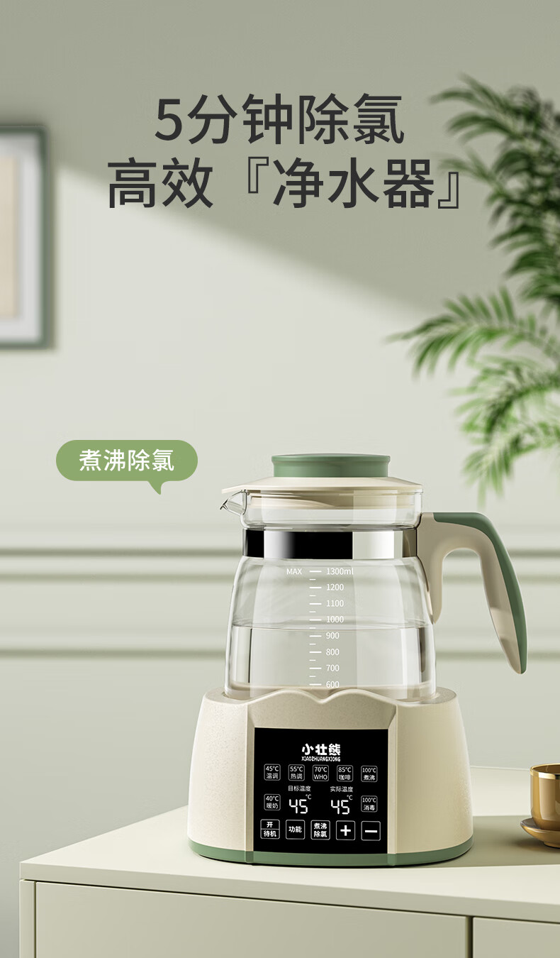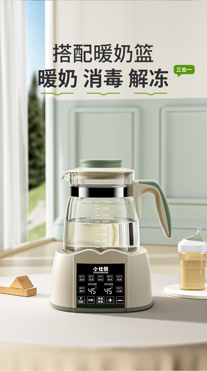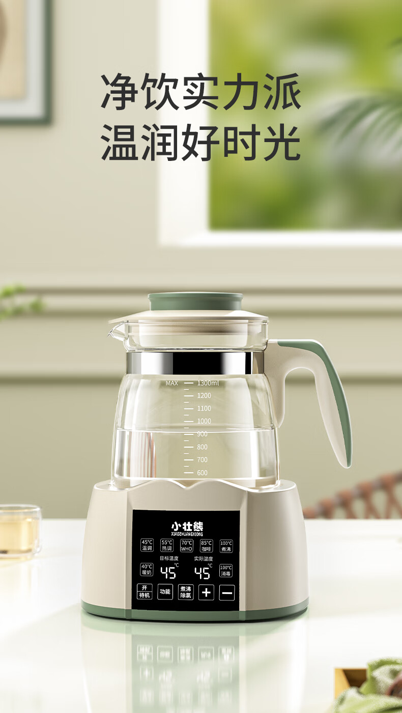 Xiaozhuangxiong (XIAOZHAUNGXIONG) constant temperature kettle baby constant temperature kettle milk regulator warm milk warmer household milk powder electric kettle 316L national trend green 1300ml kettle memory
