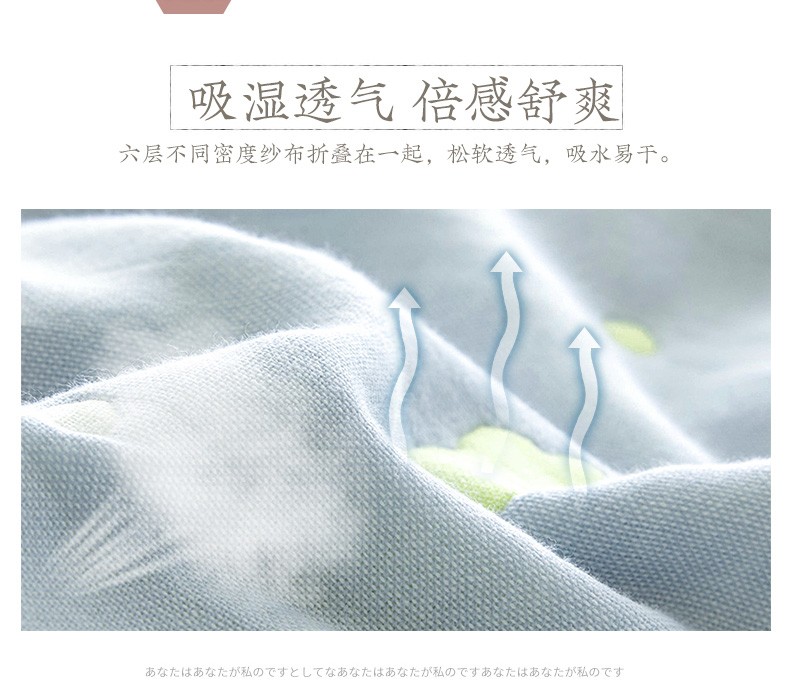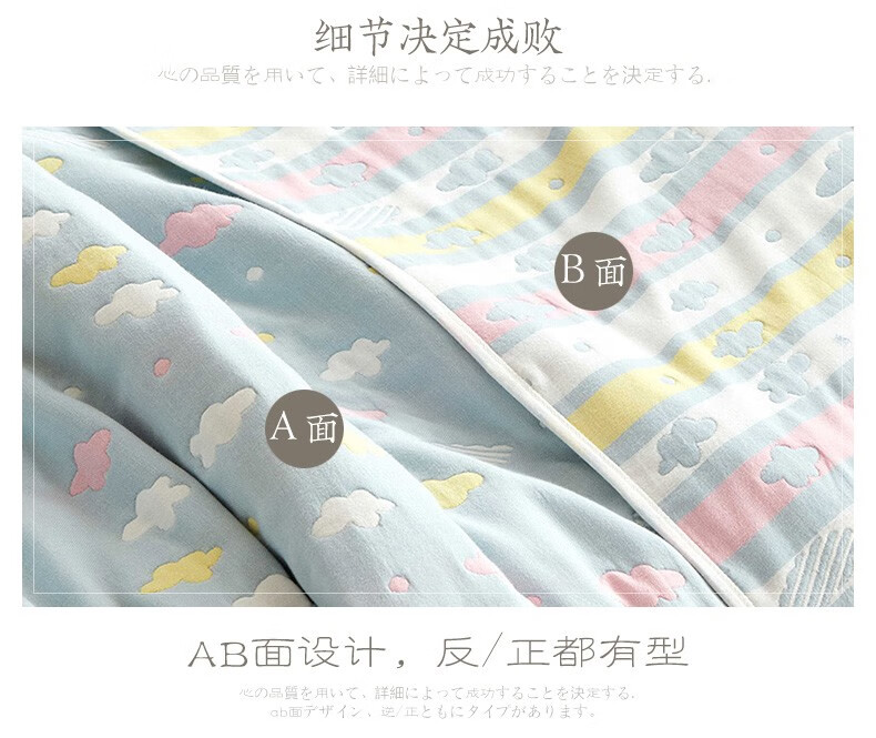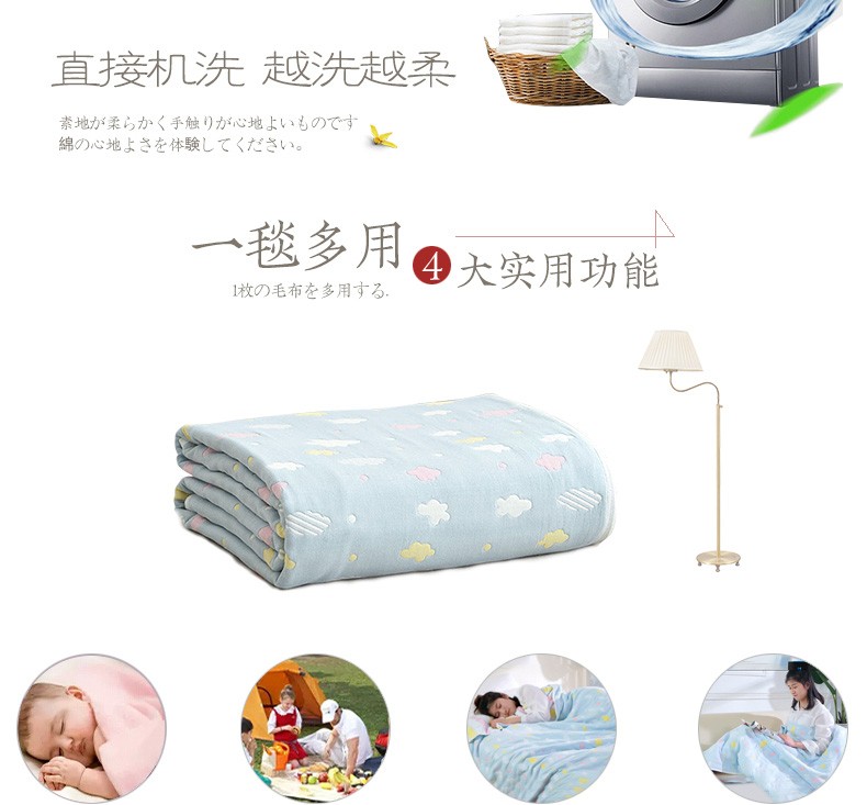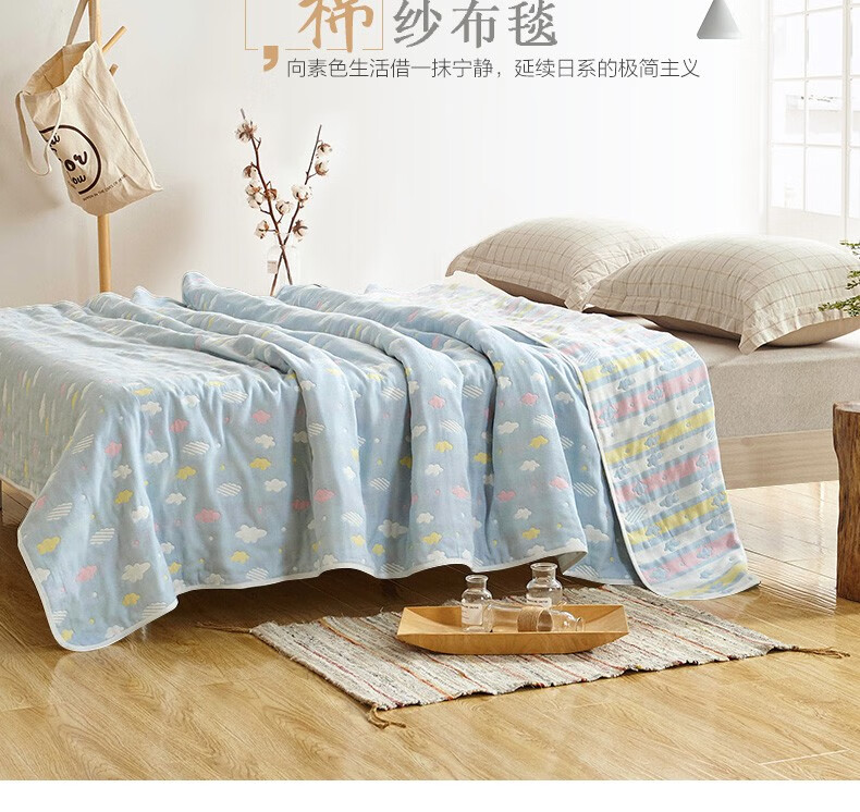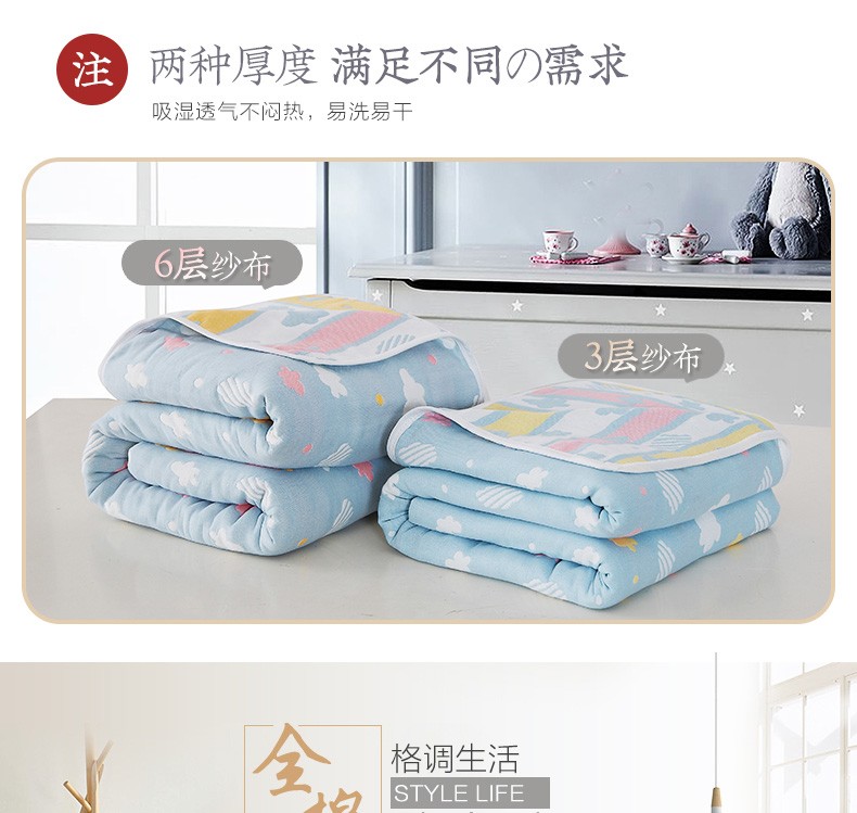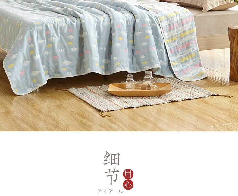 Hengyuanxiang pure cotton six-layer gauze towel quilt baby nap quilt summer cooling quilt children's baby sofa office blanket thickened six-layer towel quilt-Caiyun Blue 240cm*200cm