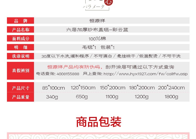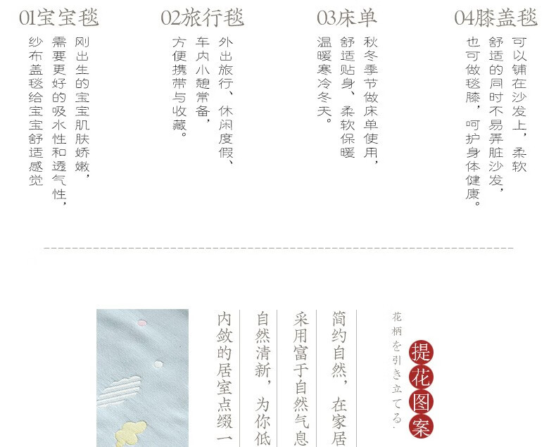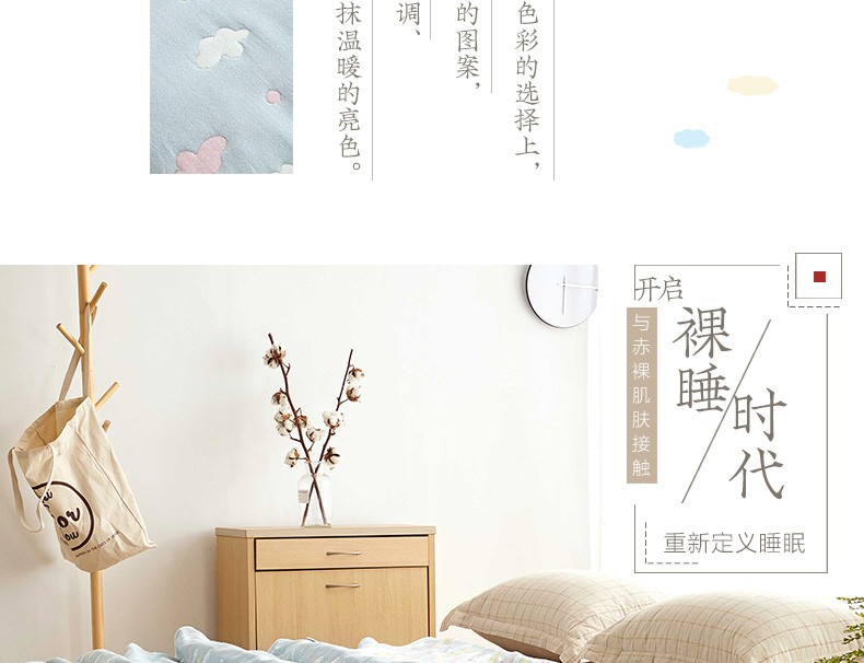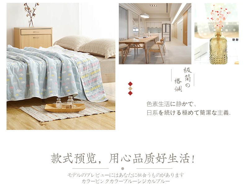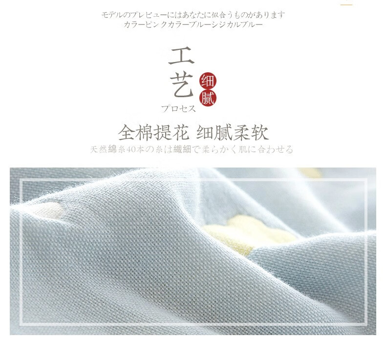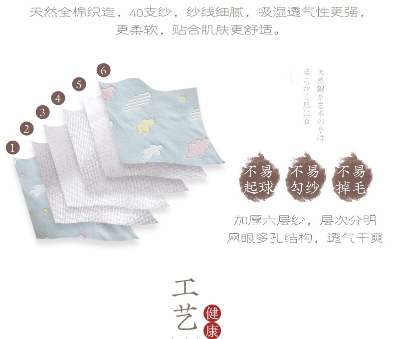 Hengyuanxiang pure cotton six-layer gauze towel quilt baby nap quilt summer cooling quilt children's baby sofa office blanket thickened six-layer towel quilt-Caiyun Blue 240cm*200cm