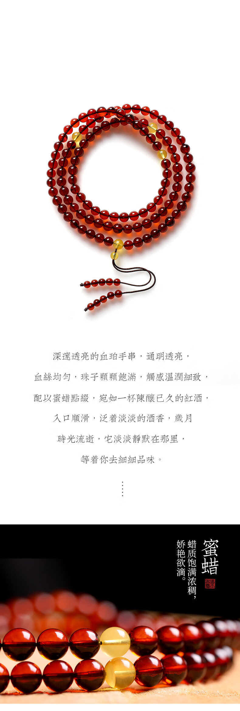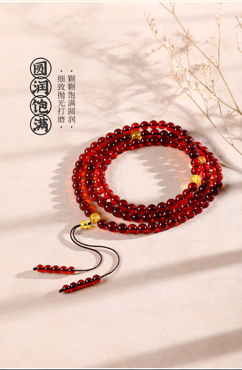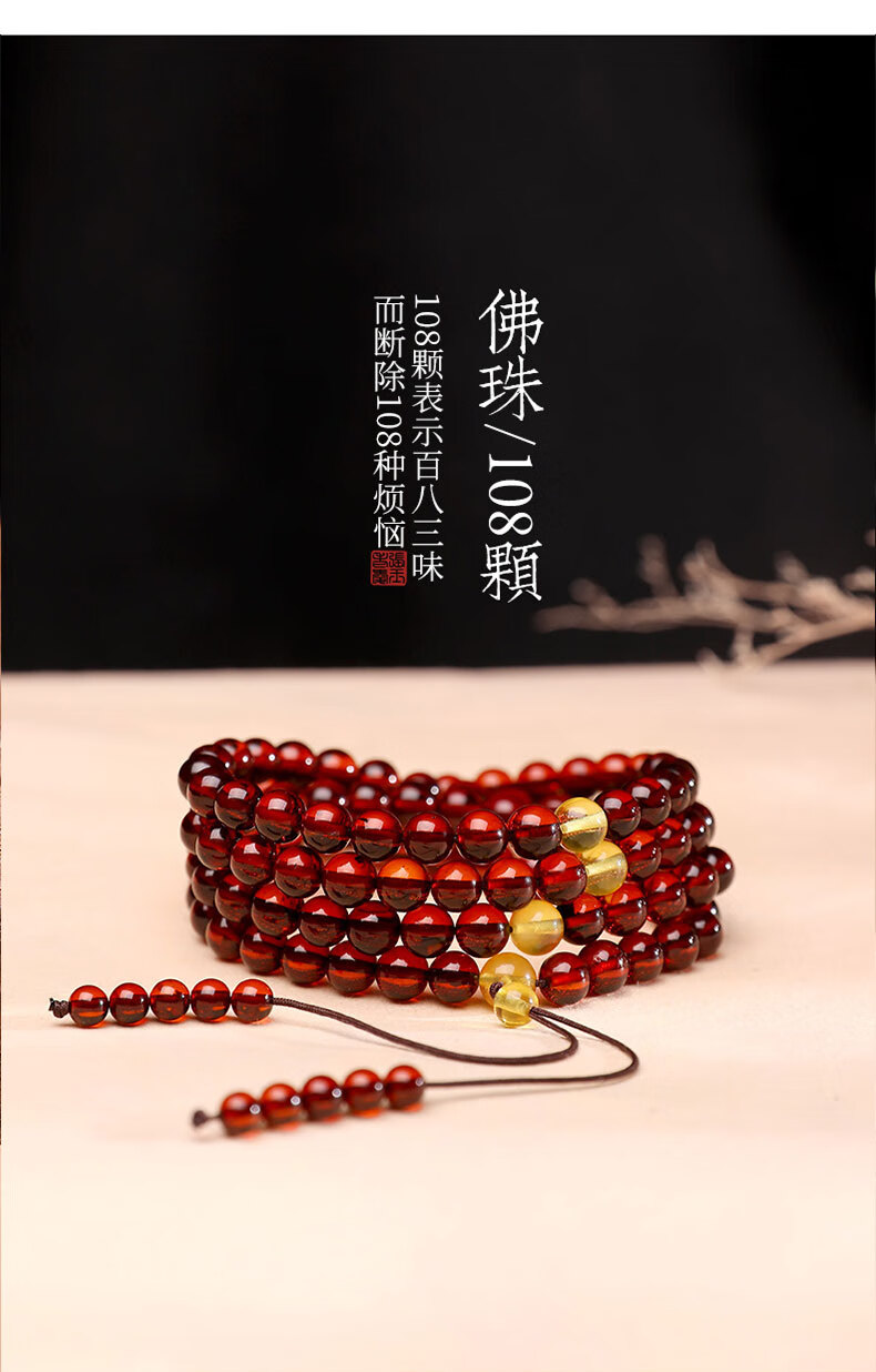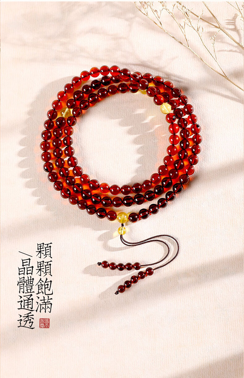 MUJUE Amber Bracelet for Men and Women Multi-circle Blood Amber Bracelet DIY Beeswax Hand Decoration Buddha Beads 108 Round Beads Bead Diameter Approximately 5-6mm