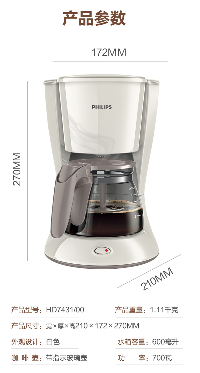 Philips coffee machine household drip American MINI coffee maker HD7431/00